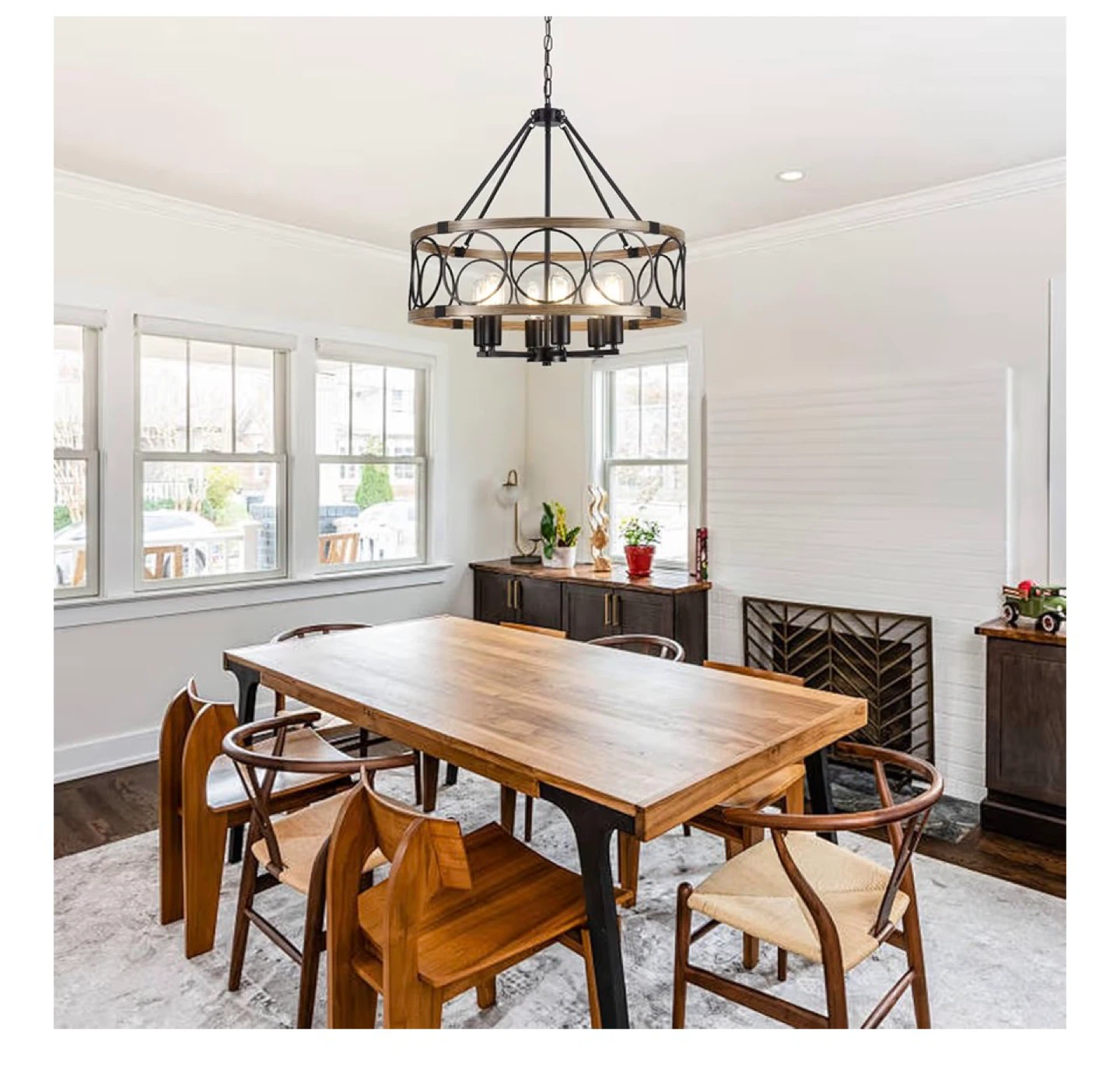 6-Light Farmhouse Chandelier - Rustic Wood Grain Pendant Light