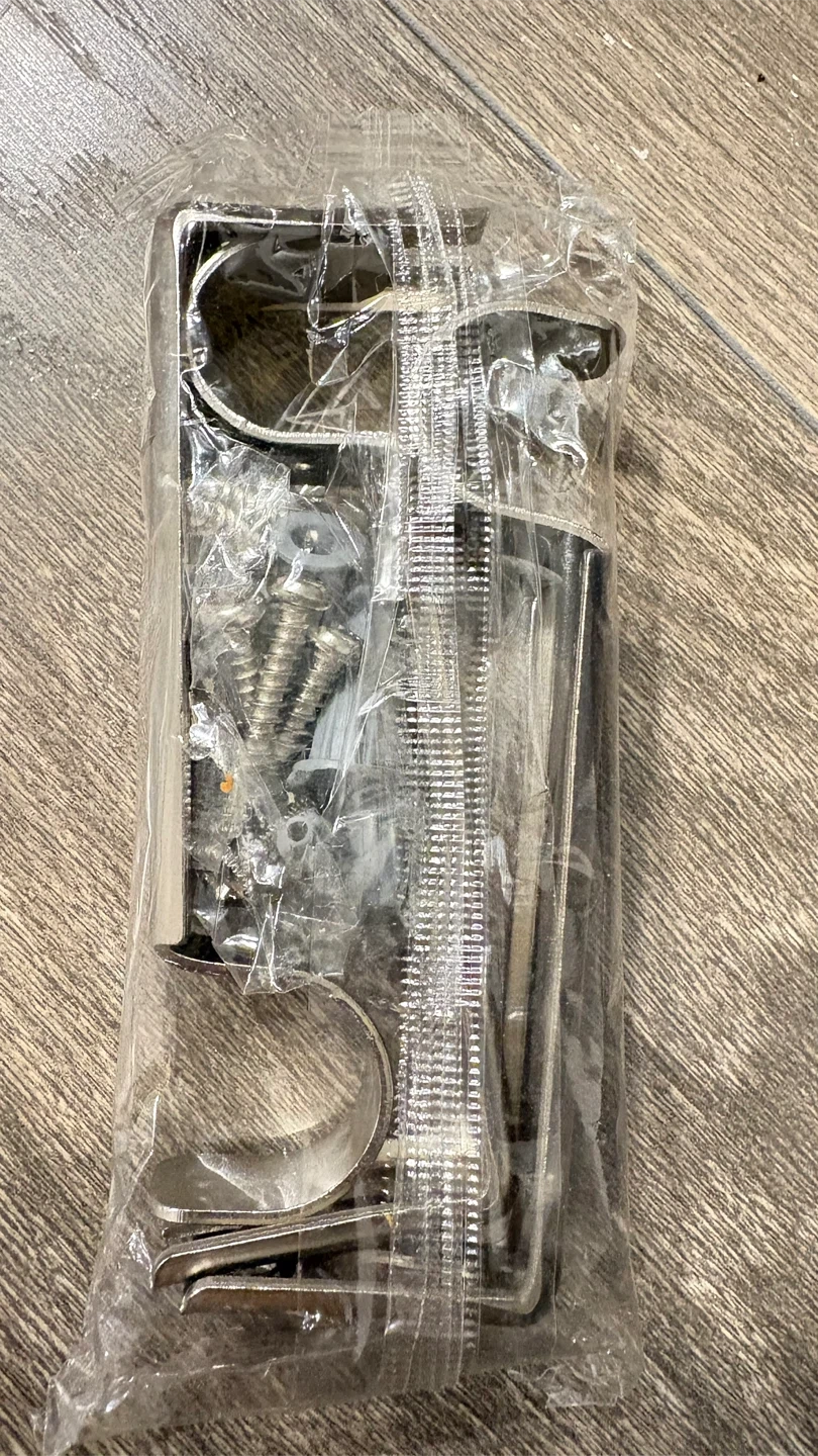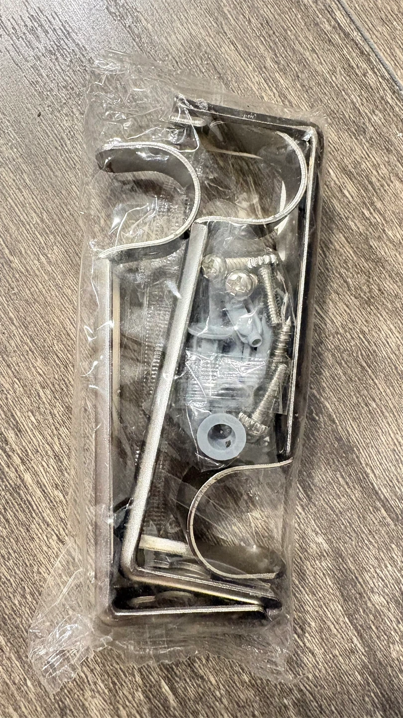 These are new curtain rod brackets designed for a clean look. Includes all necessary screws and anchors for installation. Metal construction ensures durability.