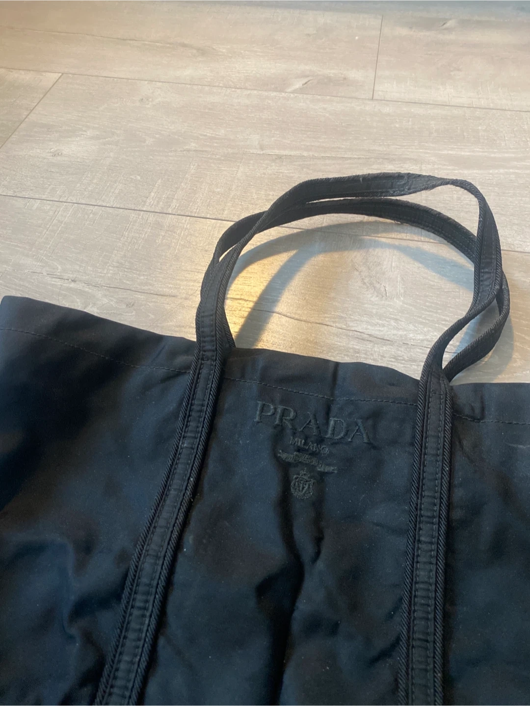 Selling a classic black Prada tote bag! It's a stylish and versatile piece, perfect for everyday use. The bag features the Prada logo and is made of durable material. It has some signs of wear, but still has plenty of life left! Bought from a vintage Japan store that checked for authenticity.