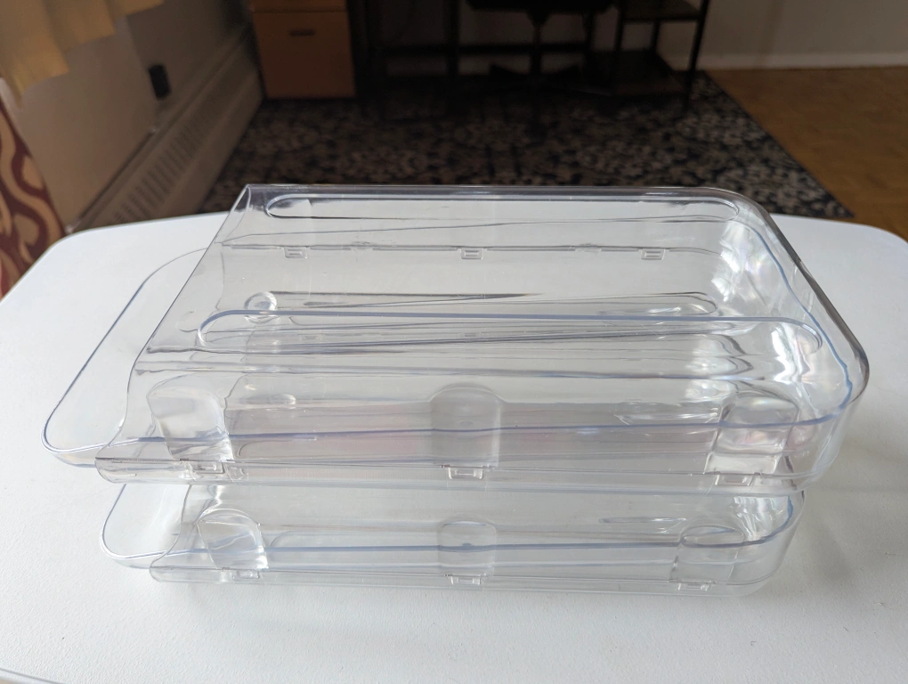 ✅ Set of 2 automatic rolling egg holders for fridge or countertop use ✅ Each holder stores eggs in a slanted track—new egg rolls forward automatically ✅ Space-saving clear plastic design—easy to stack and see contents ✅ Quick-remove inner tray makes cleaning fast and simple ✅ Ideal for organizing eggs in fridge, RVs, or pantry ✅ Like New, condition 📍 Pickup near Bayview & Sheppard (North York, Toronto) 🚫 No holds, priced to sell, no lowballing 💵 Cash only on pickup