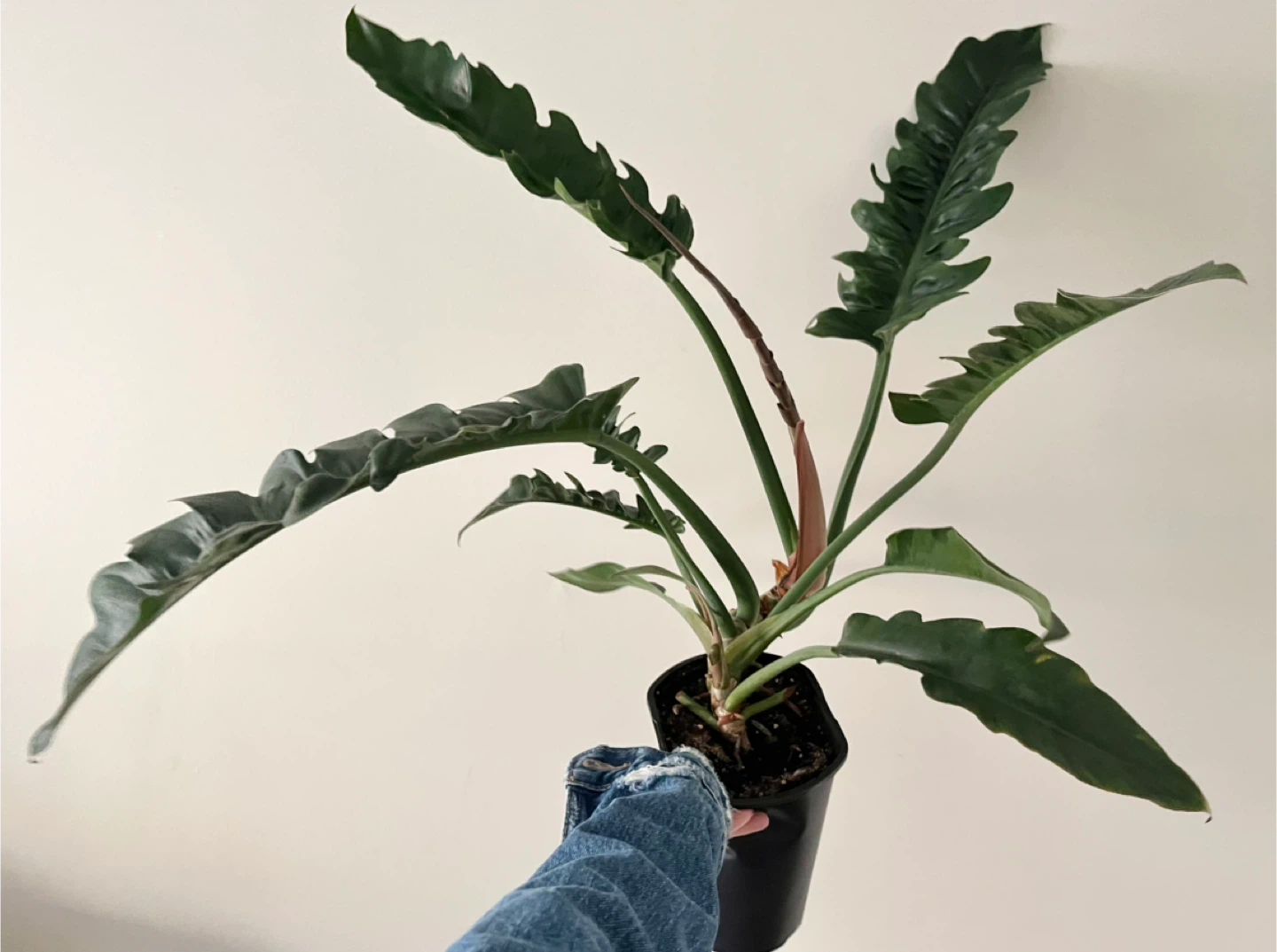 Selling a healthy Philodendron Narrow plant! It's a beautiful plant with unique, deeply lobed leaves. It's currently potted in a black plastic pot and ready to brighten up your space.