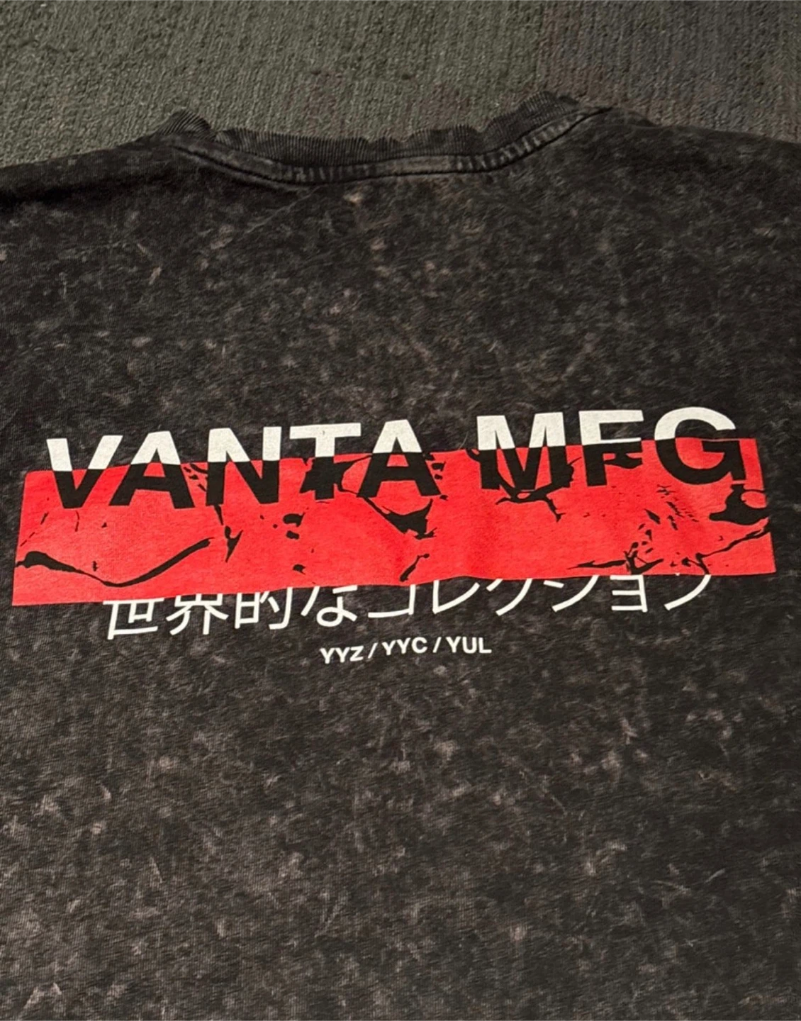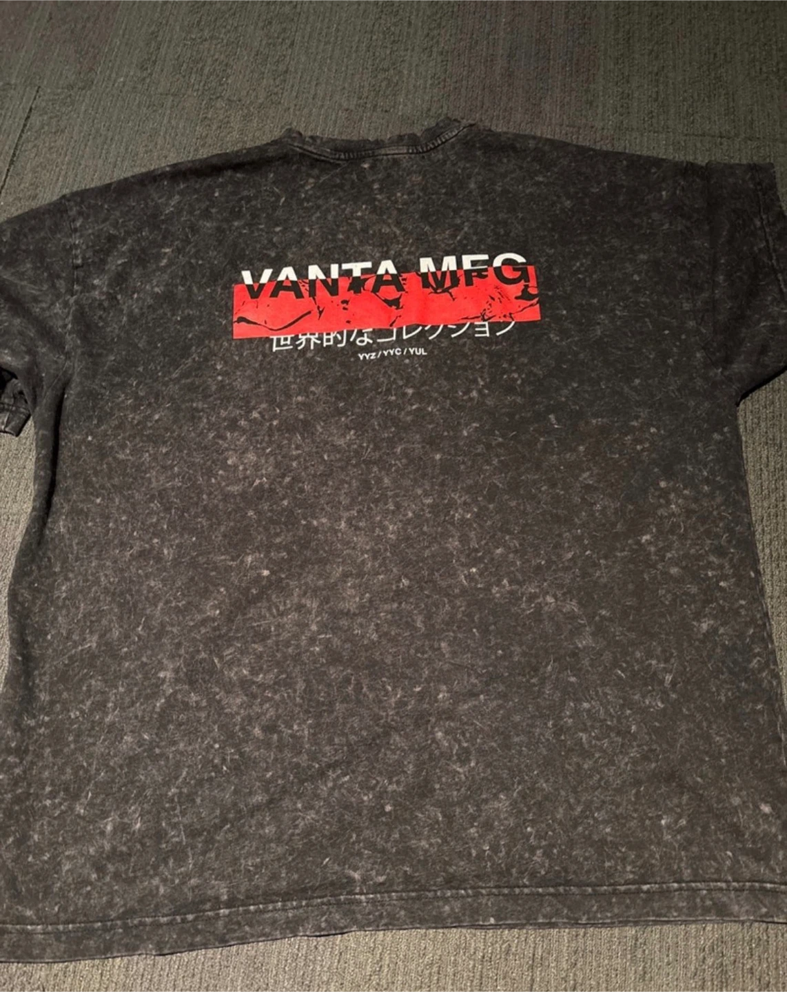 This is a Vanta MFG t-shirt, perfect for casual wear, featuring a unique design. It is used, but still in good condition. This shirt is an extra large.