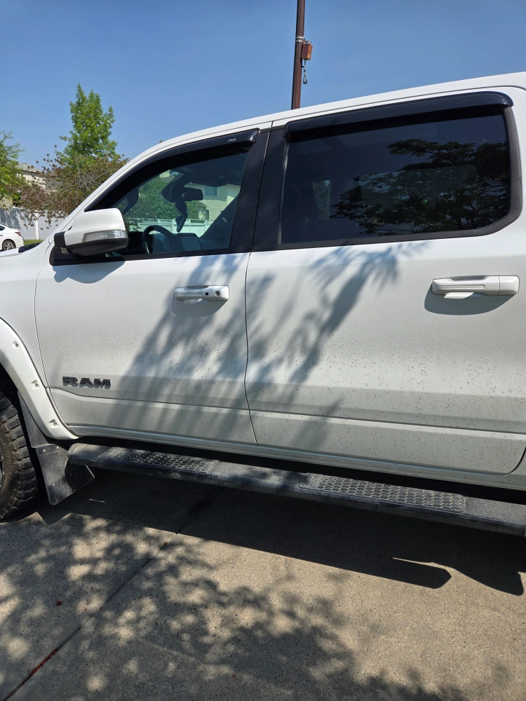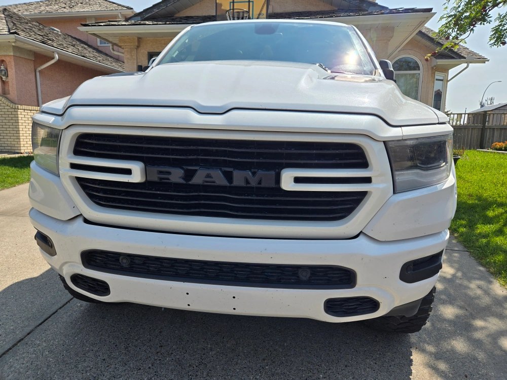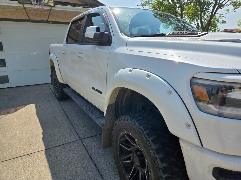 A white ram 1500 sport. There is a dealership done 6 inch lift with bigger tires. Also with an extended gas tank. 122000km. In good condition. Husband has a work vehicle now and it is not being used.