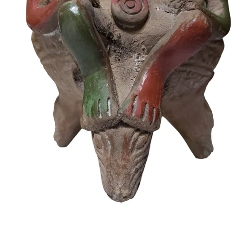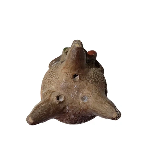 This is a vintage figural souvenir vase, showcasing Mexican Folk Art inspired by Aztec, Inca, and Mayan designs. A unique decorative piece.
