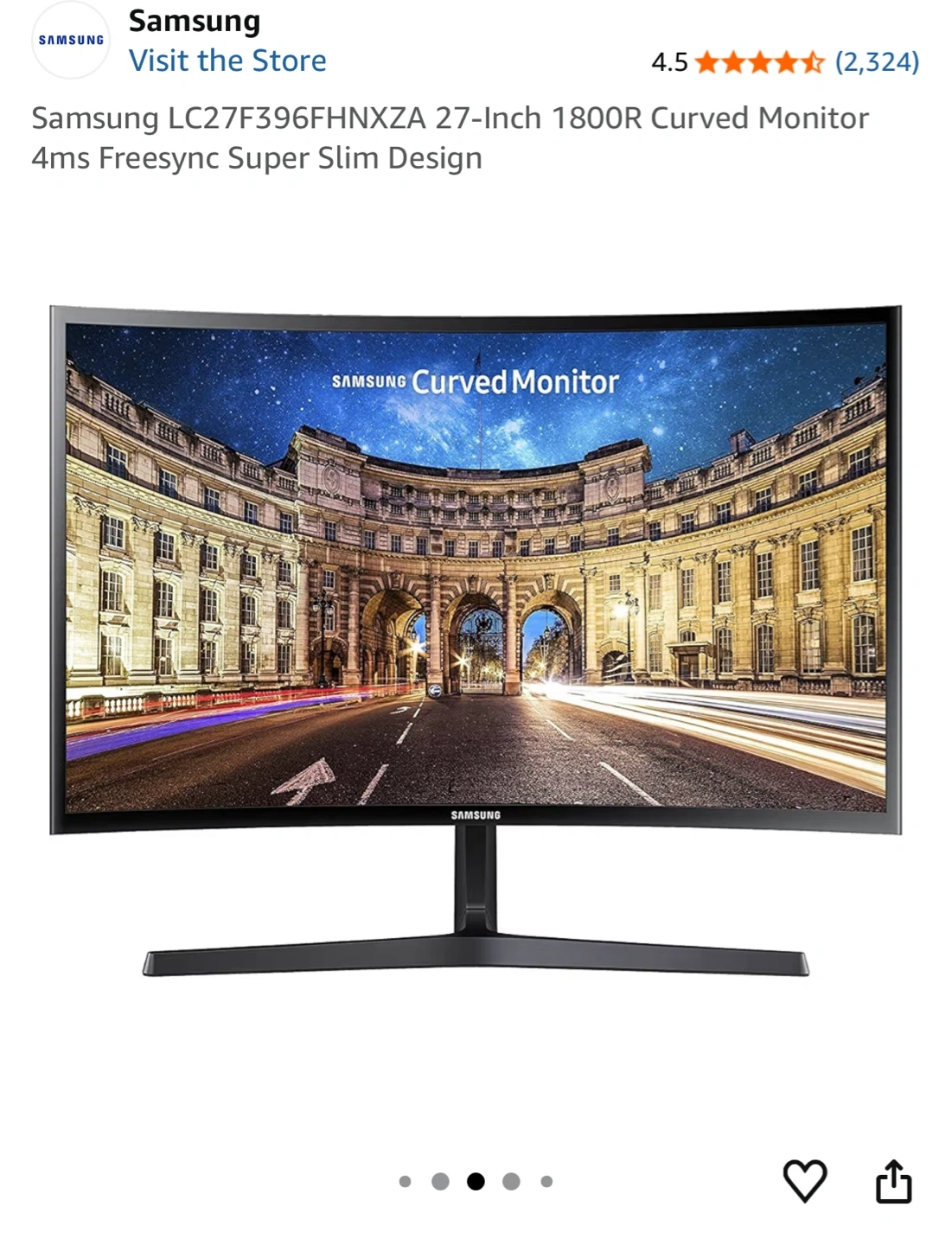 Samsung 27-inch curved monitor with an 1800R curvature. It has a 4ms response time and Freesync technology. This super slim design offers a great viewing experience.