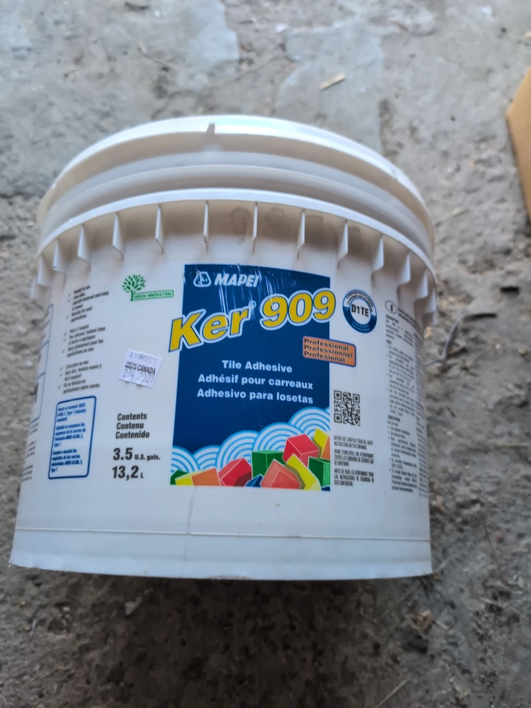 MAPEI Ker 909 tile adhesive in a 3.5 US gallon bucket. It's professional grade adhesive for tiles. Contents 13.2L.