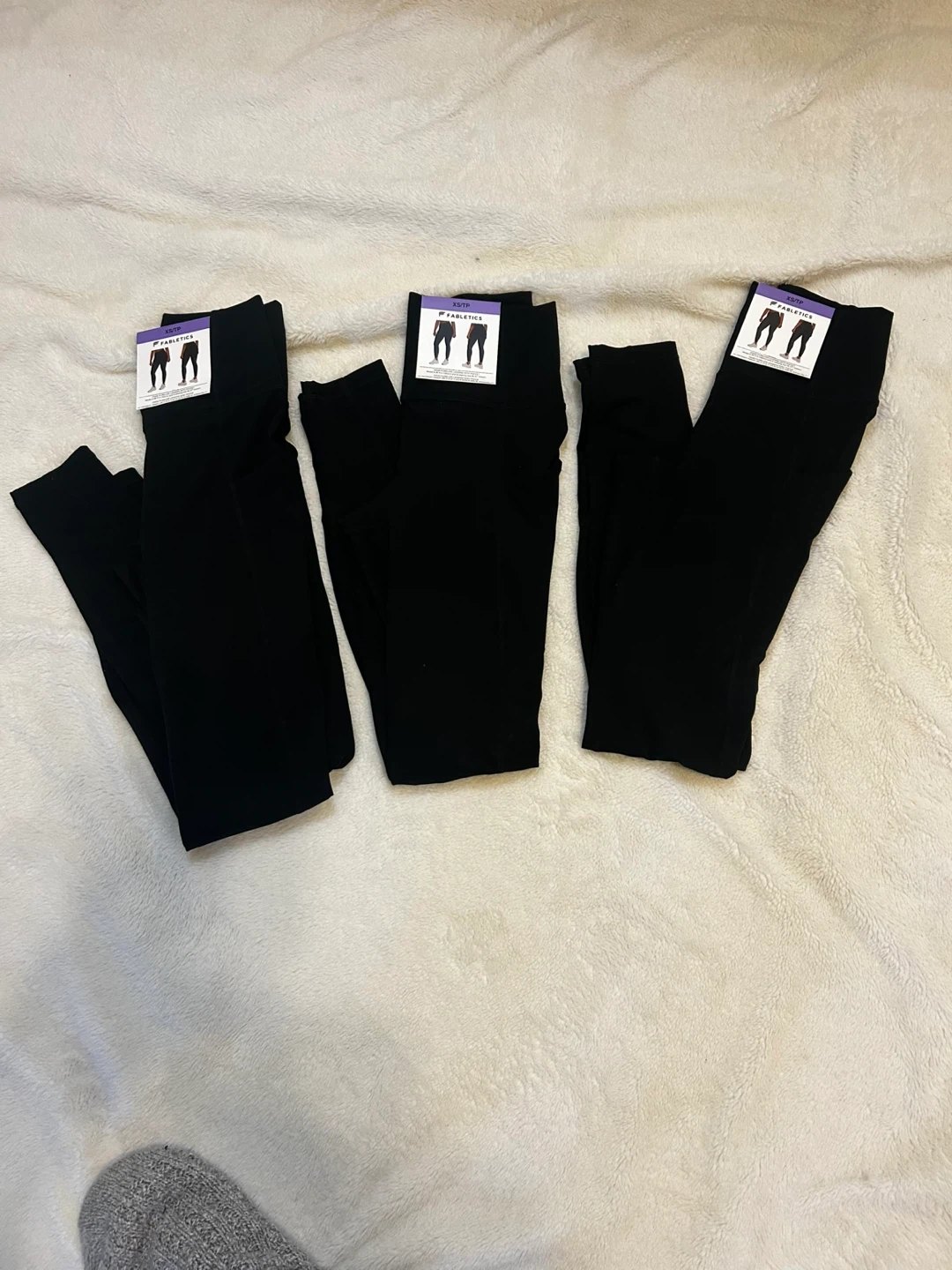 Selling (3) pairs of Fabletics Oasis Pure Luxe leggings in black. These leggings feature pockets and are size XS/TP. Made with a blend of nylon and lycra.