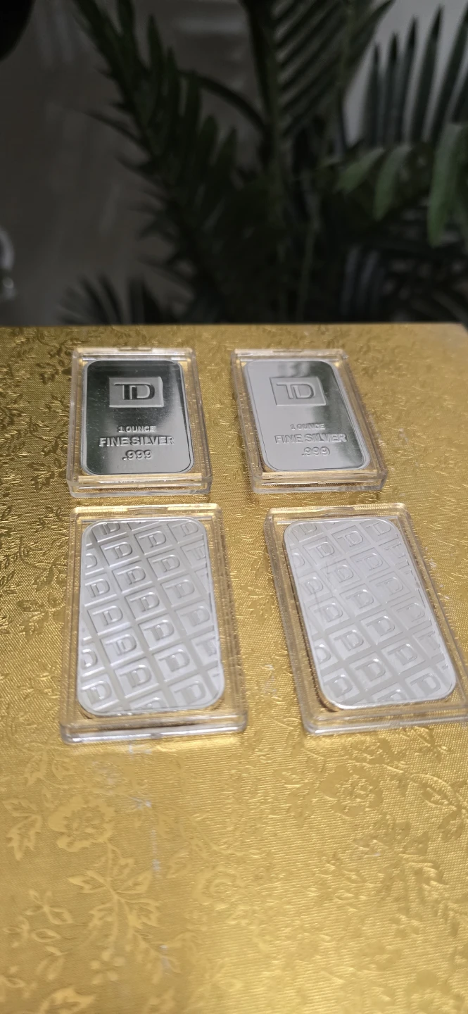 Selling TD 1 ounce fine silver .999 bullion bars, each in its original protective case.