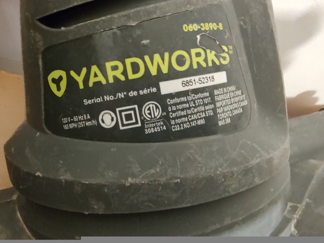 The leaf blower is in good condition and comes with a powerful 8 Amp motor and 35 foot long black cord. Price: $40. A 30 feet long red extension cord with 3 outlets is also available for $20. Located downtown near the College subway station.
