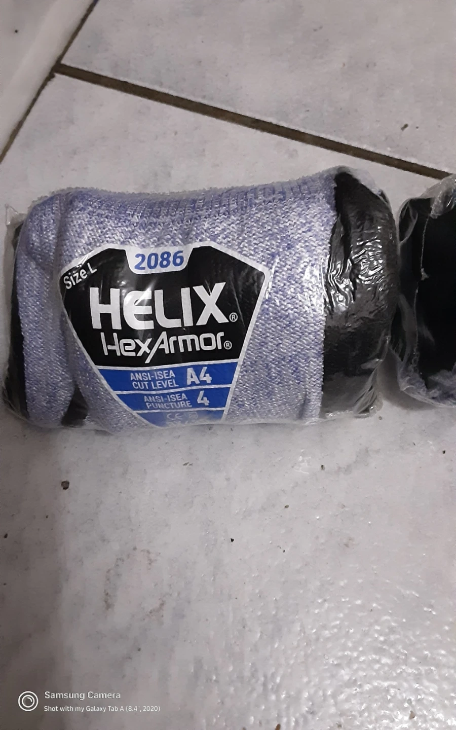 These are HELIX HexArmor work gloves in size Large. They feature an ANSI-ISEA Cut Level A4 and ANSI-ISEA Puncture Level 4 rating. These gloves offer good protection for demanding tasks.