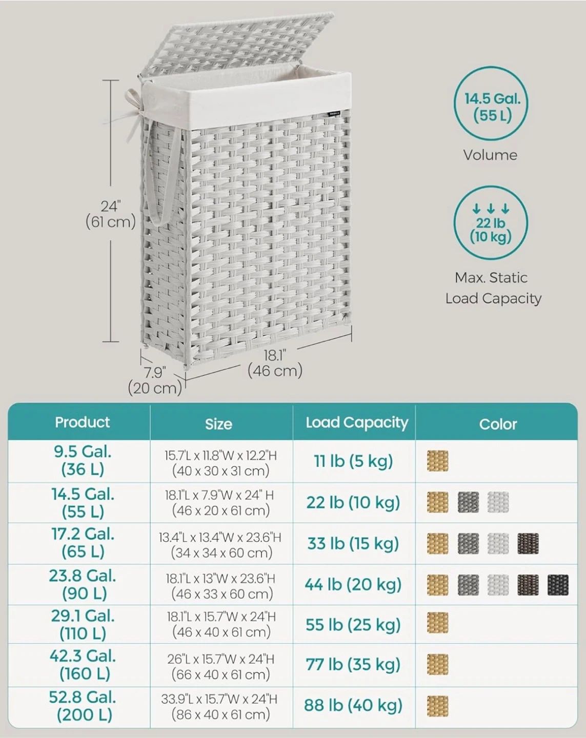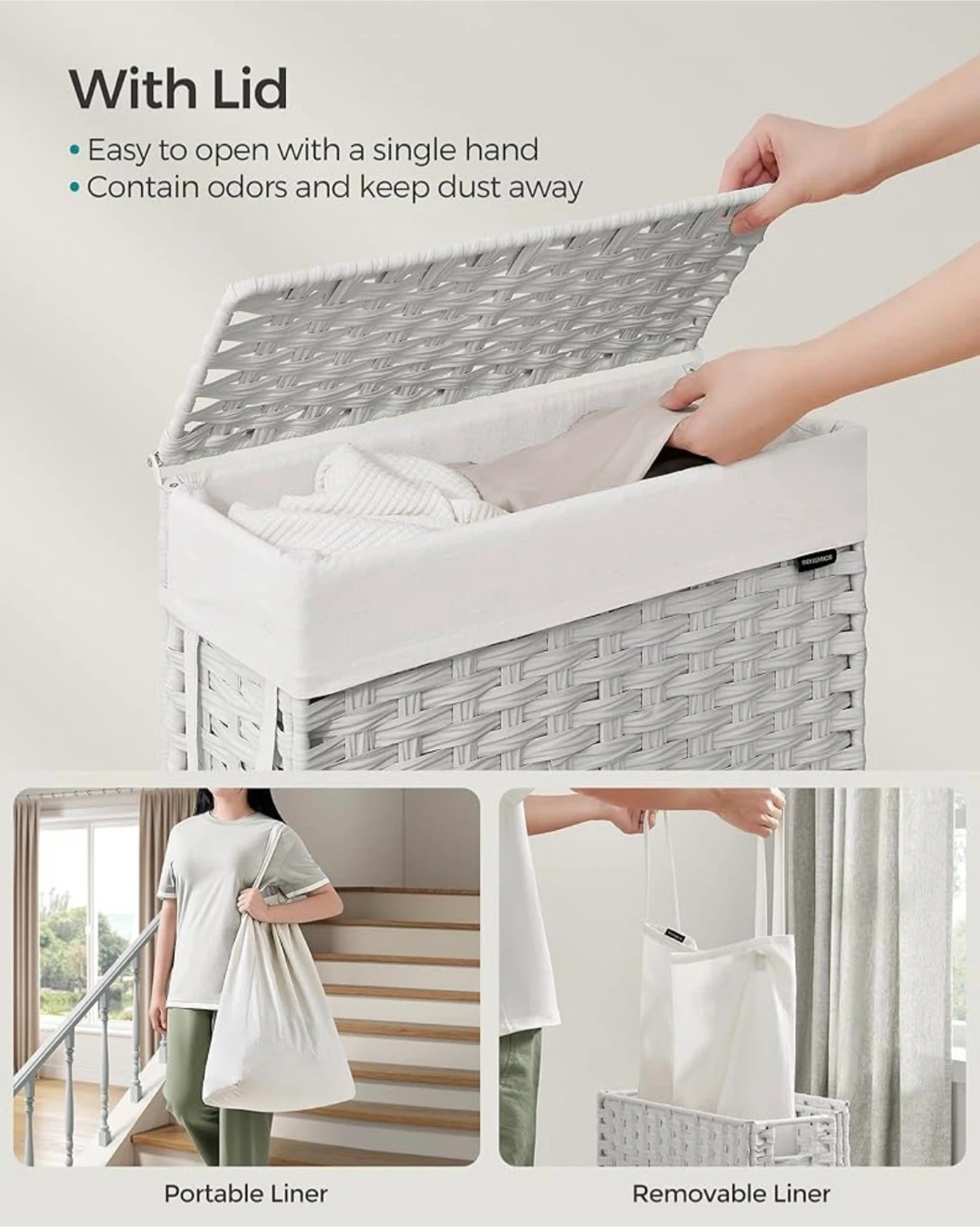 Slim Laundry Hamper with Lid 55L – Rattan Style, Vacuum Sealed