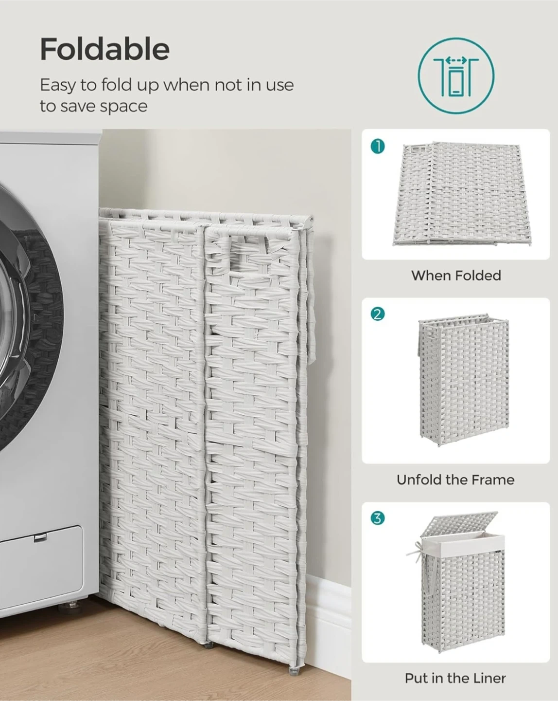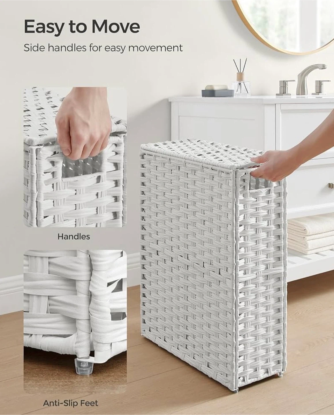 Slim Laundry Hamper with Lid 55L – Rattan Style, Vacuum Sealed