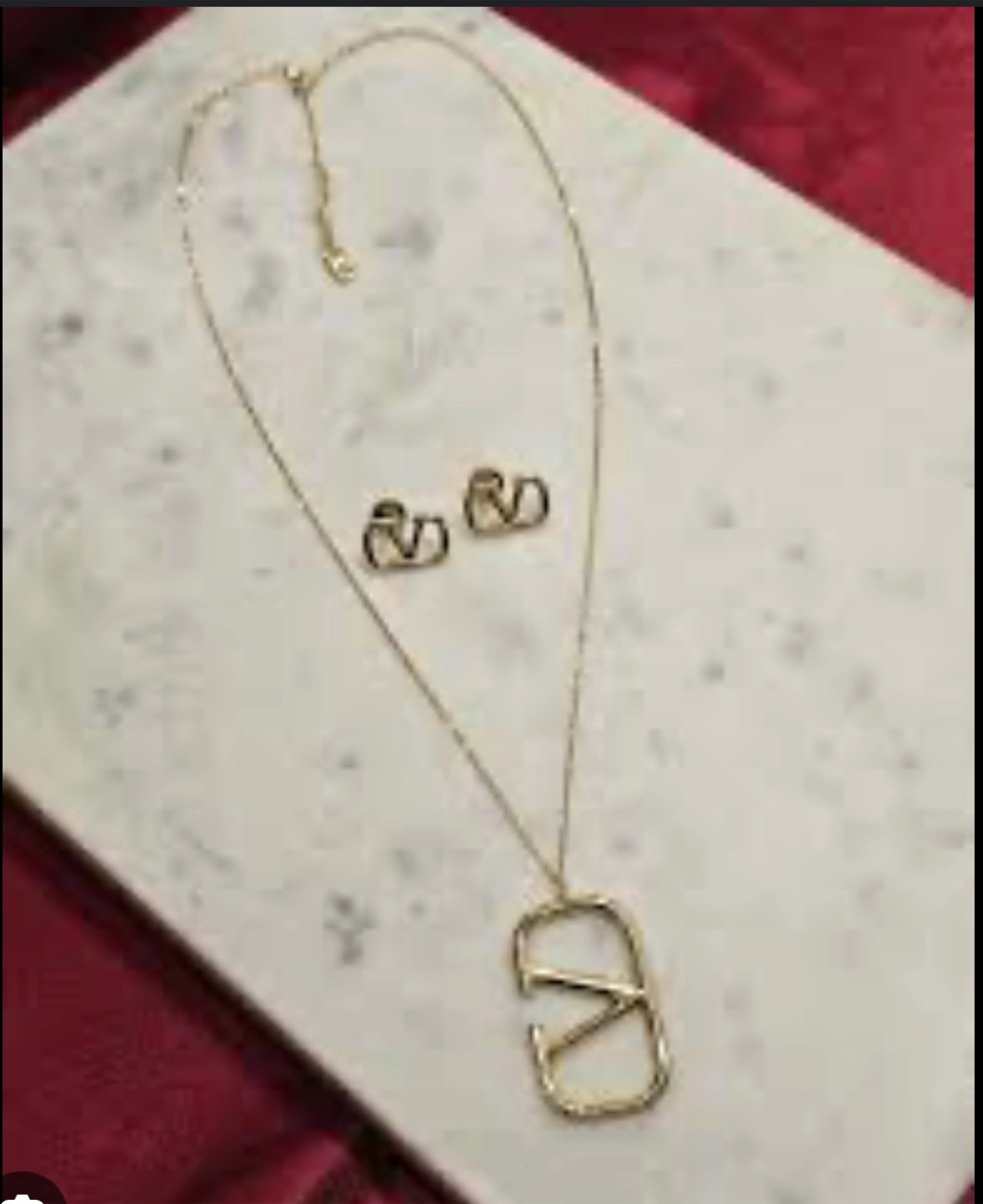 Selling a Valentino necklace in a gold tone featuring the VLogo. It's in great condition and the perfect accessory to add a touch of elegance to any outfit.