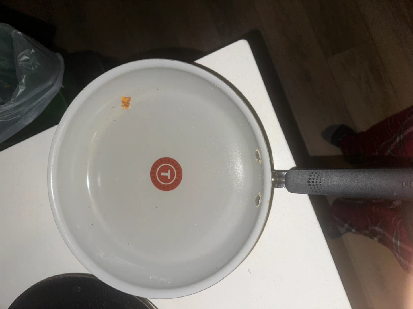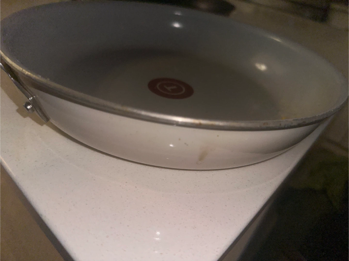 Selling a T-fal frying pan. It's white and in used condition, as you can see in the photos. Great for cooking up your favourite meals!