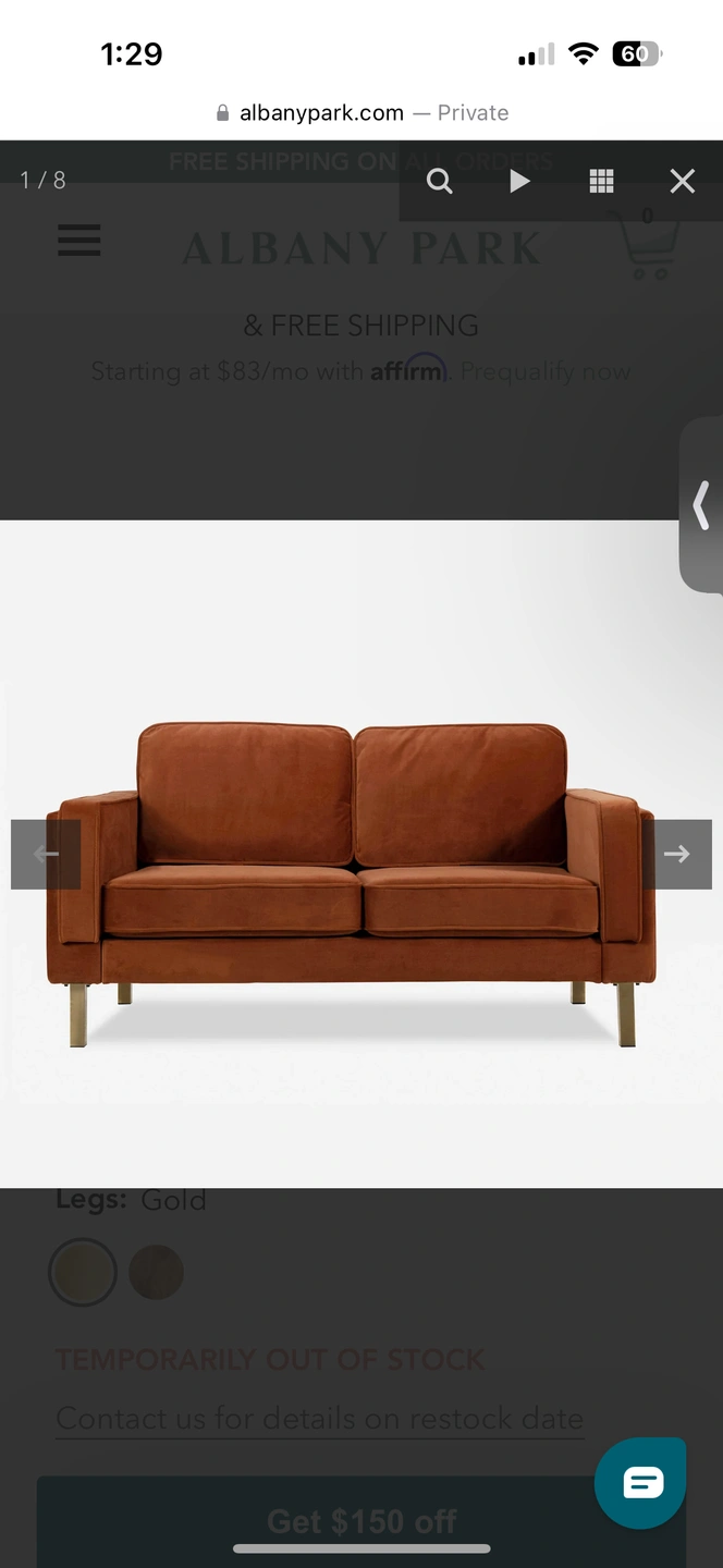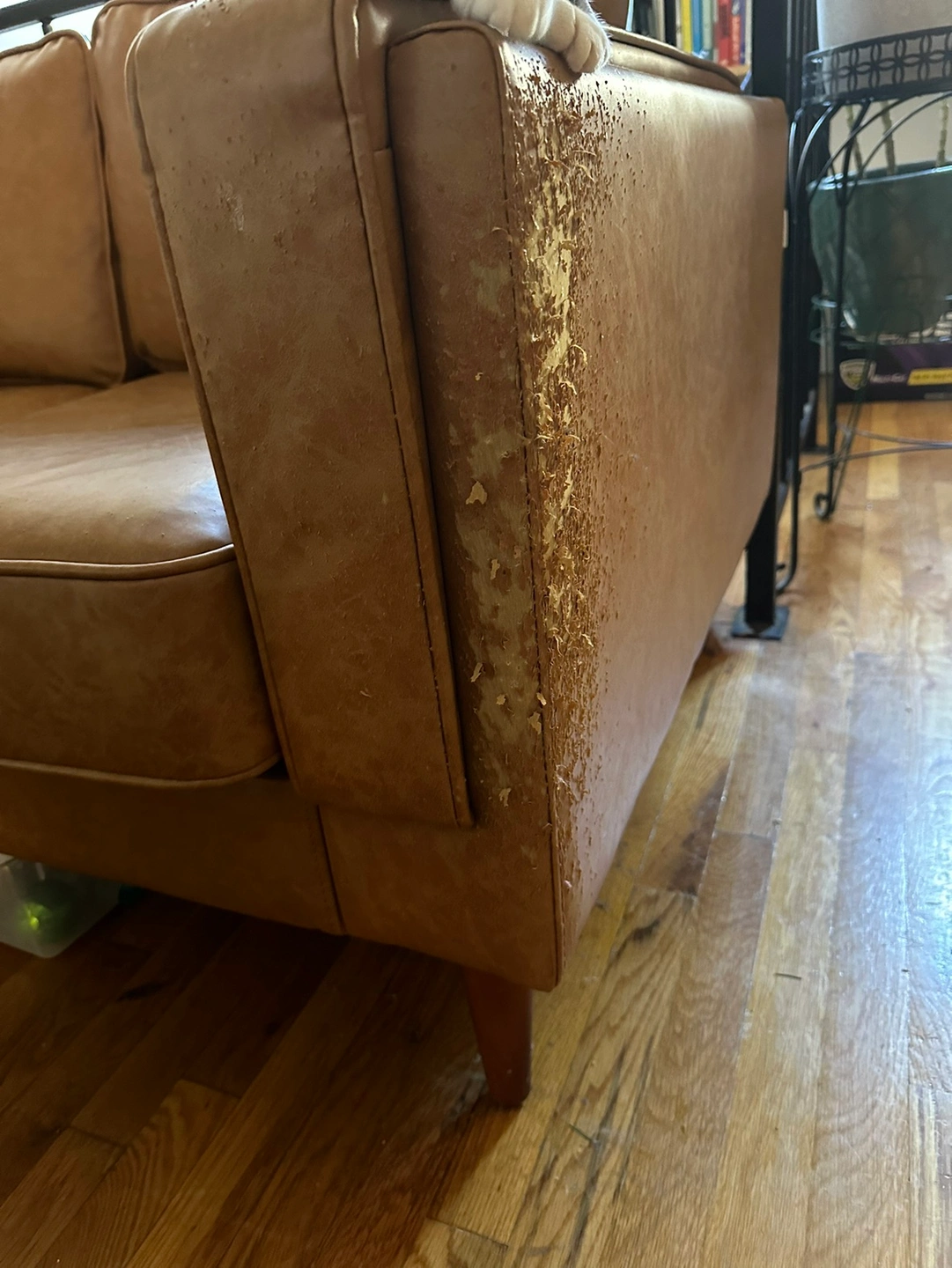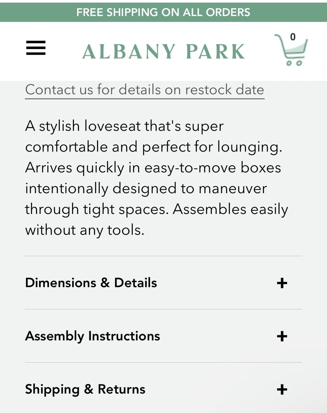 Please read accordingly. The pictures have all the details of this loveseat. It is very deeply reduced. Unfortunately, my cat had a bit of a good time with this loveseat. There is a way to order two new arms and it will look brand new. If you would like me to order the arms, I can. You would need to pay for the arms and along with my asking for this Couch. The arms are no more than $90 per side. Otherwise, this is a perfectly fitting loveseat. I’m only parting with it because I’m merging furniture with my partner.