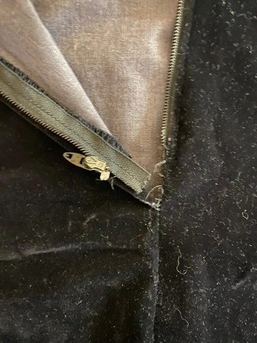 Vintage black velvet skirt, size 7 which fits like a small. There is slight tearing below the zipper which can be easily fixed.