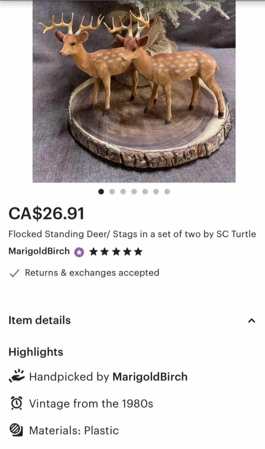 $20 Vintage (1980’s) plastic flocked Deer/Stag set of five.