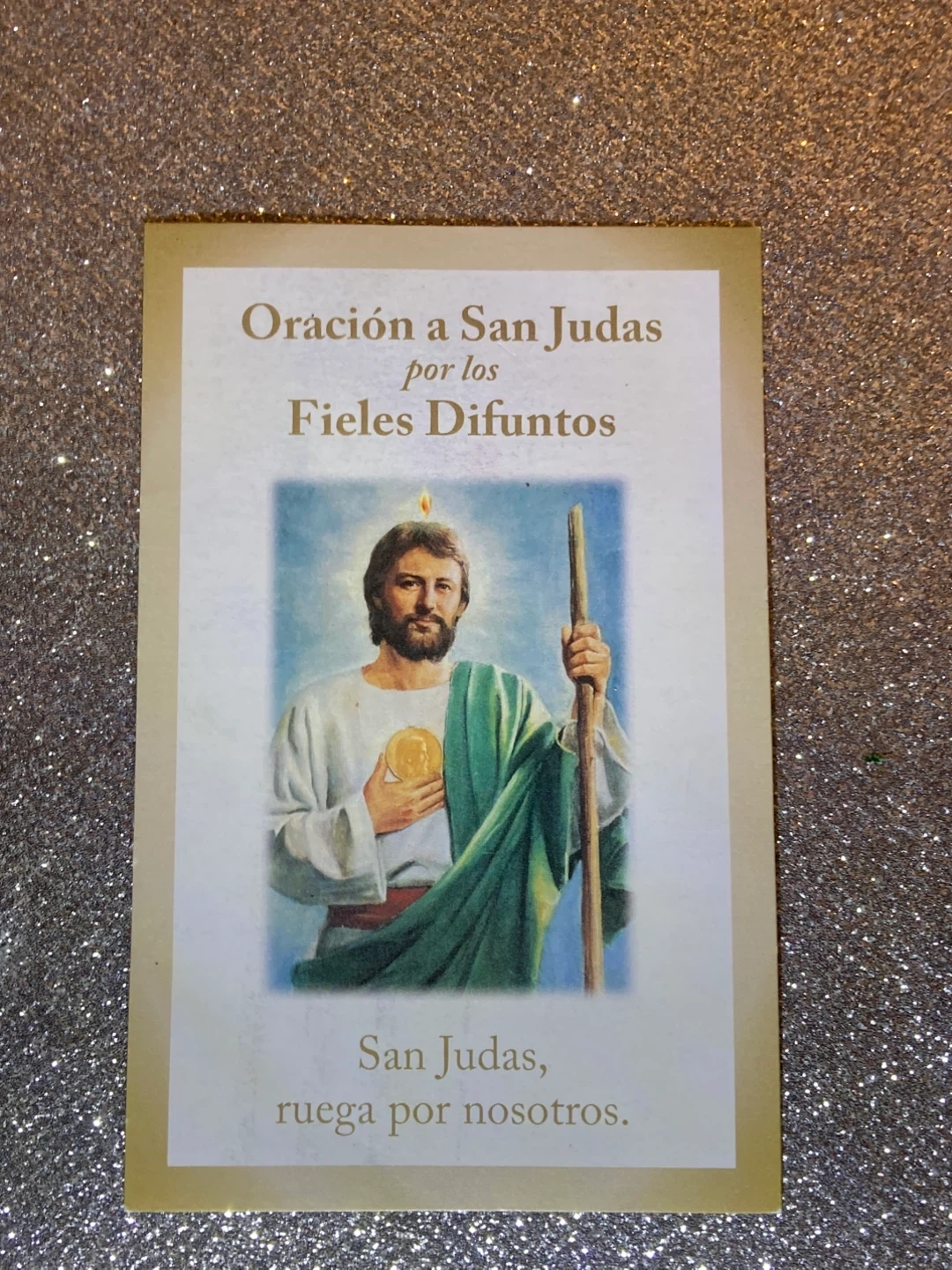 This is a prayer card for the Faithful Departed featuring an image of San Judas. The text reads 'Oración a San Judas por los Fieles Difuntos' and 'San Judas, ruega por nosotros.'