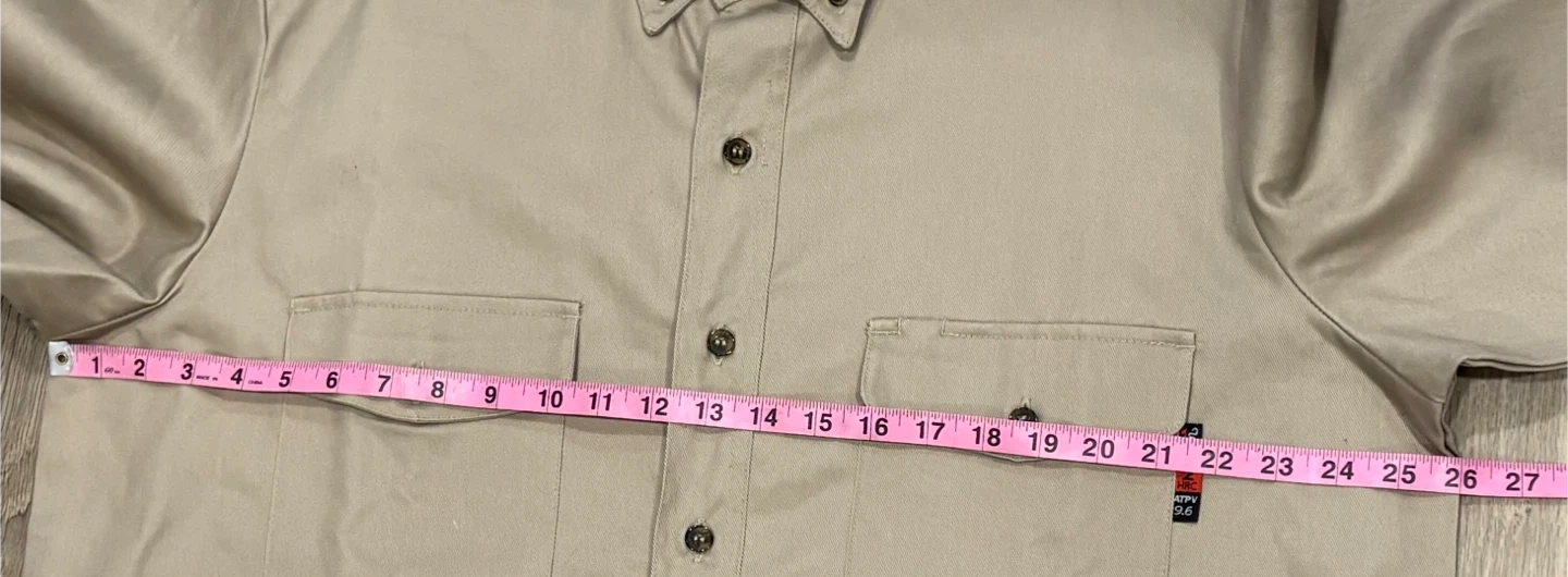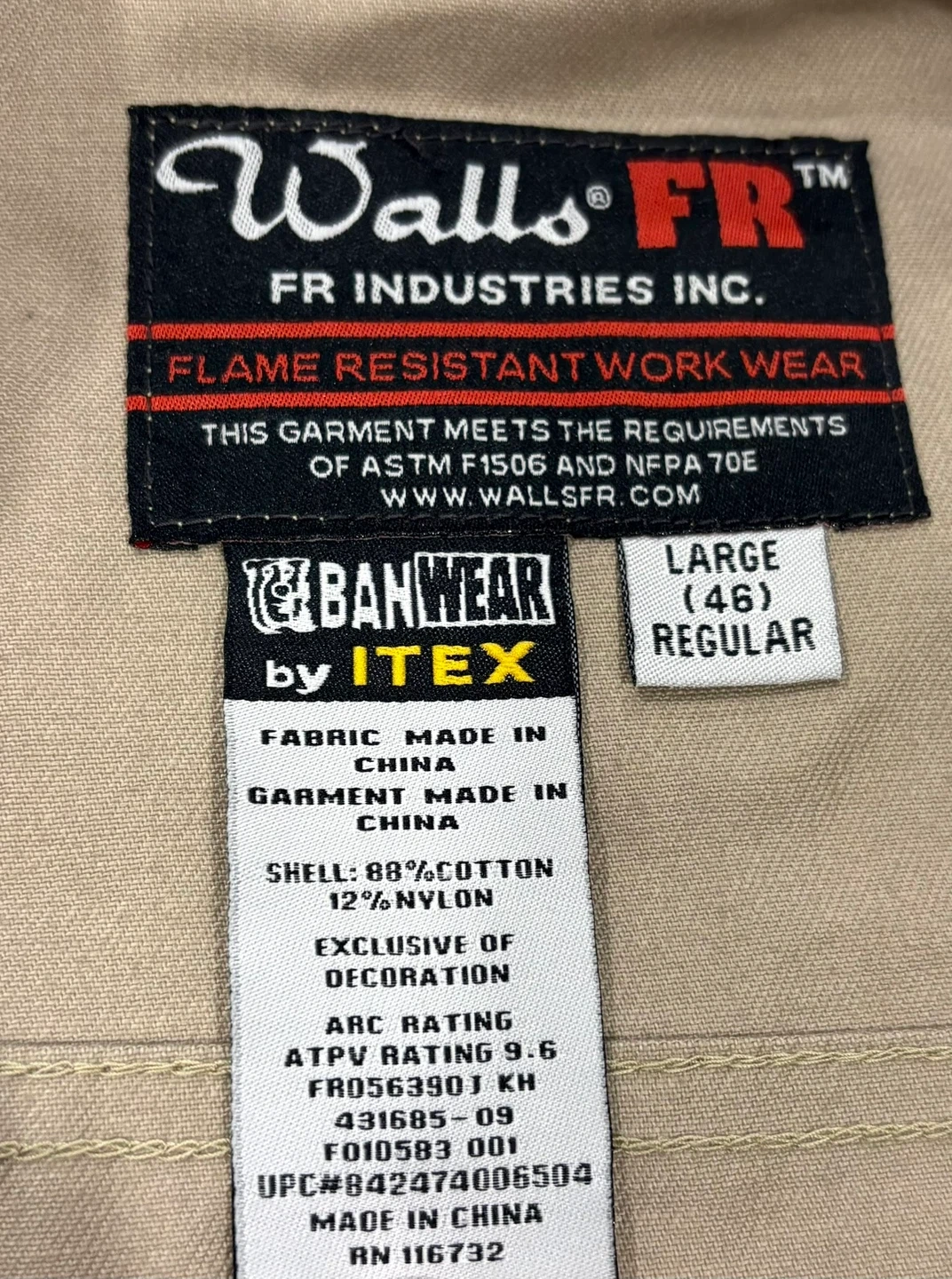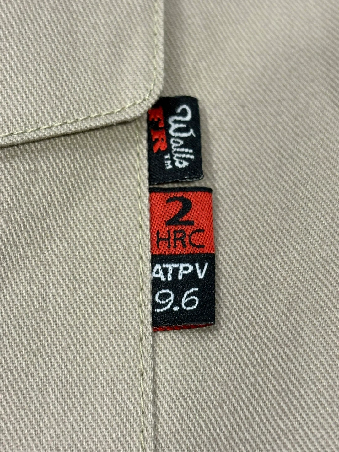 Flame resistant work shirt by Walls. Made from 88% cotton and 12% nylon. This shirt meets ASTM F1506 and NFPA 70E requirements. It has an ATPV rating of 9.6.