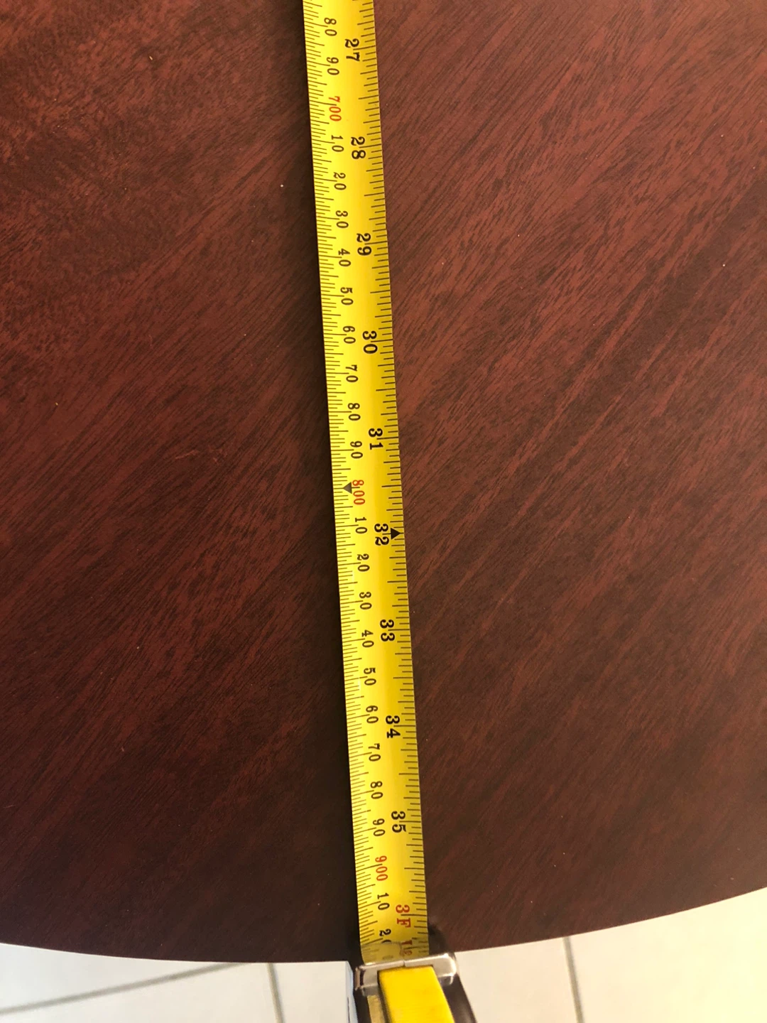 Selling a round wooden table that's perfect for a dining area or office space. It comes with four comfortable black chairs. The table's diameter is approximately 35 inches. This set is great for small gatherings or everyday use!