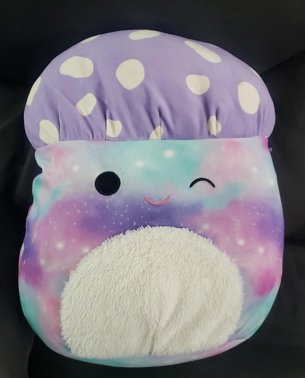 10Selling a cute Squishmallow plush shaped like a mushroom! It's in great condition and features a fun galaxy-themed design with a soft, fluffy texture on the bottom. Perfect for cuddling or adding a touch of whimsy to any room