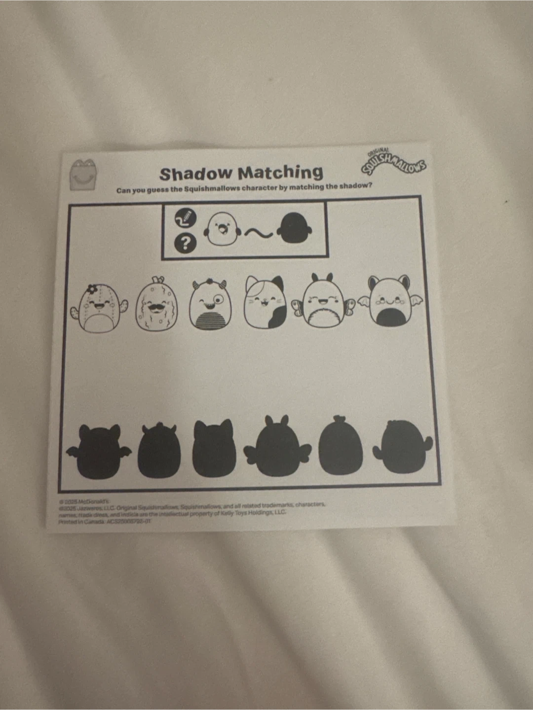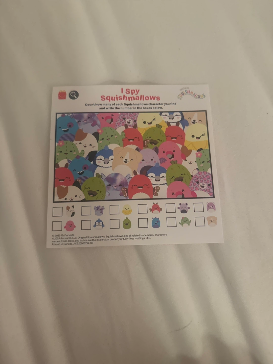 15Selling a Squishmallows activity sheet. Features an I Spy game, a maze, and a shadow matching game. Great for keeping the kids entertained!