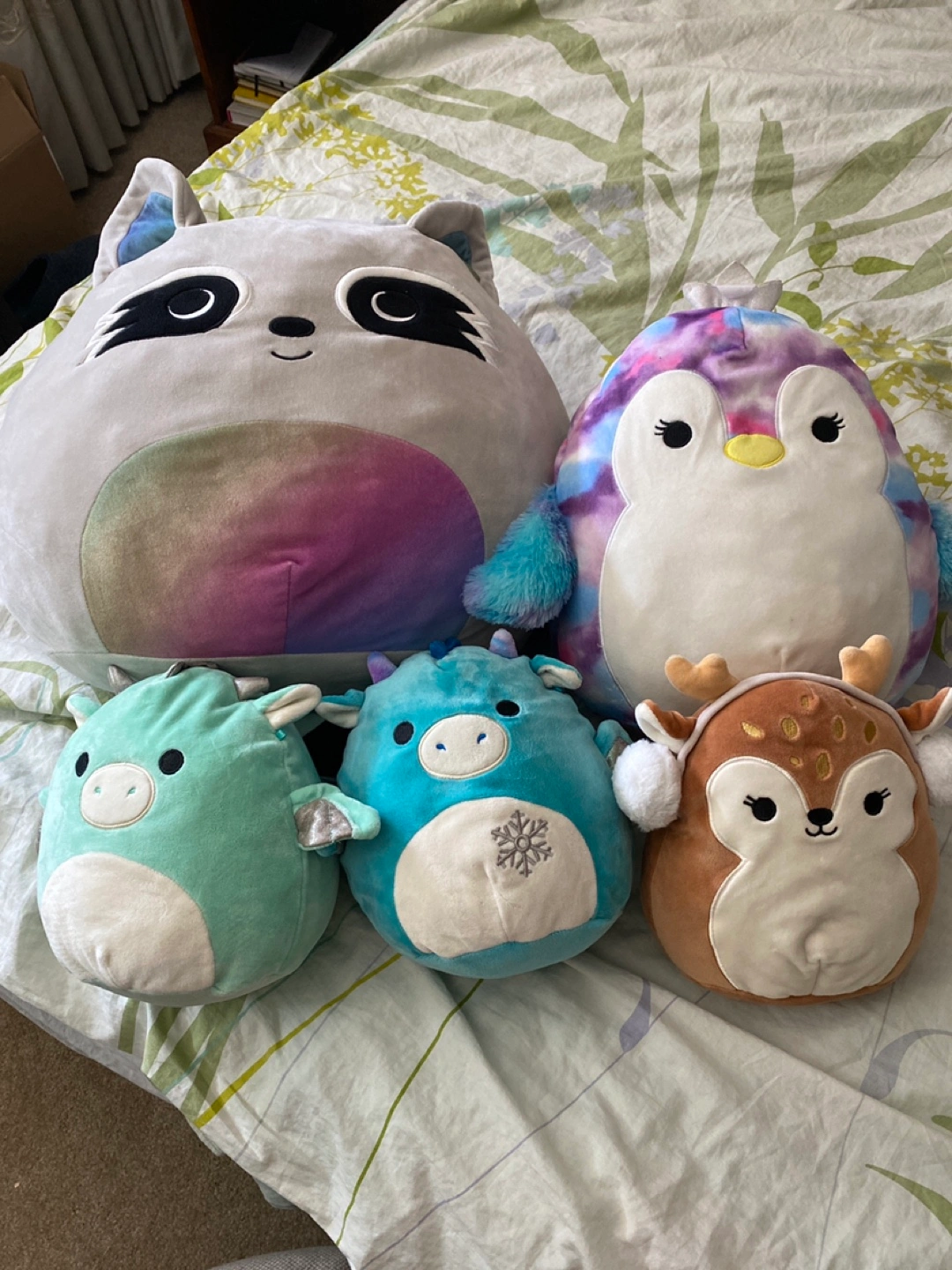 Selling my gently used Squishmallow collection, featuring a variety of adorable characters and sizes. Each plush is in good condition and ready for a new home! The Squishmallows range in size from 5 inches to 24 inches. One X large Raccoon, 1 Large penguin, 1 medium deer, 2 medium dragons & 7 small (ocean themed), 1 small blue Jay, 1 small dragon, 1 small bunny $40 if you take all. Otherwise willing to sell separately, just msg for pricing. * Sizes range from 5" to 24" * Wide Variety of Characters * Soft and Huggable If the ad is up, they're still available – no need to ask! Get ready to add some squishy joy to your life!