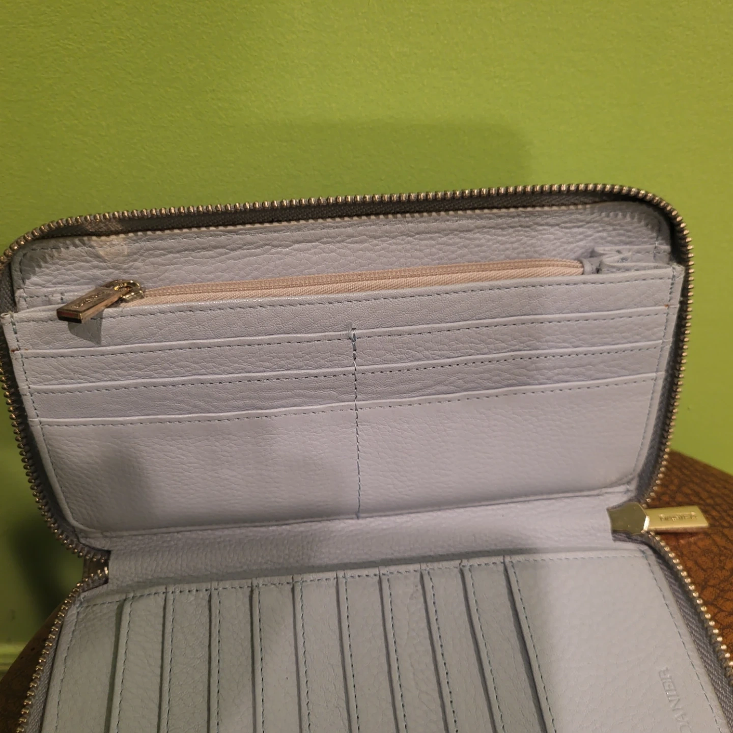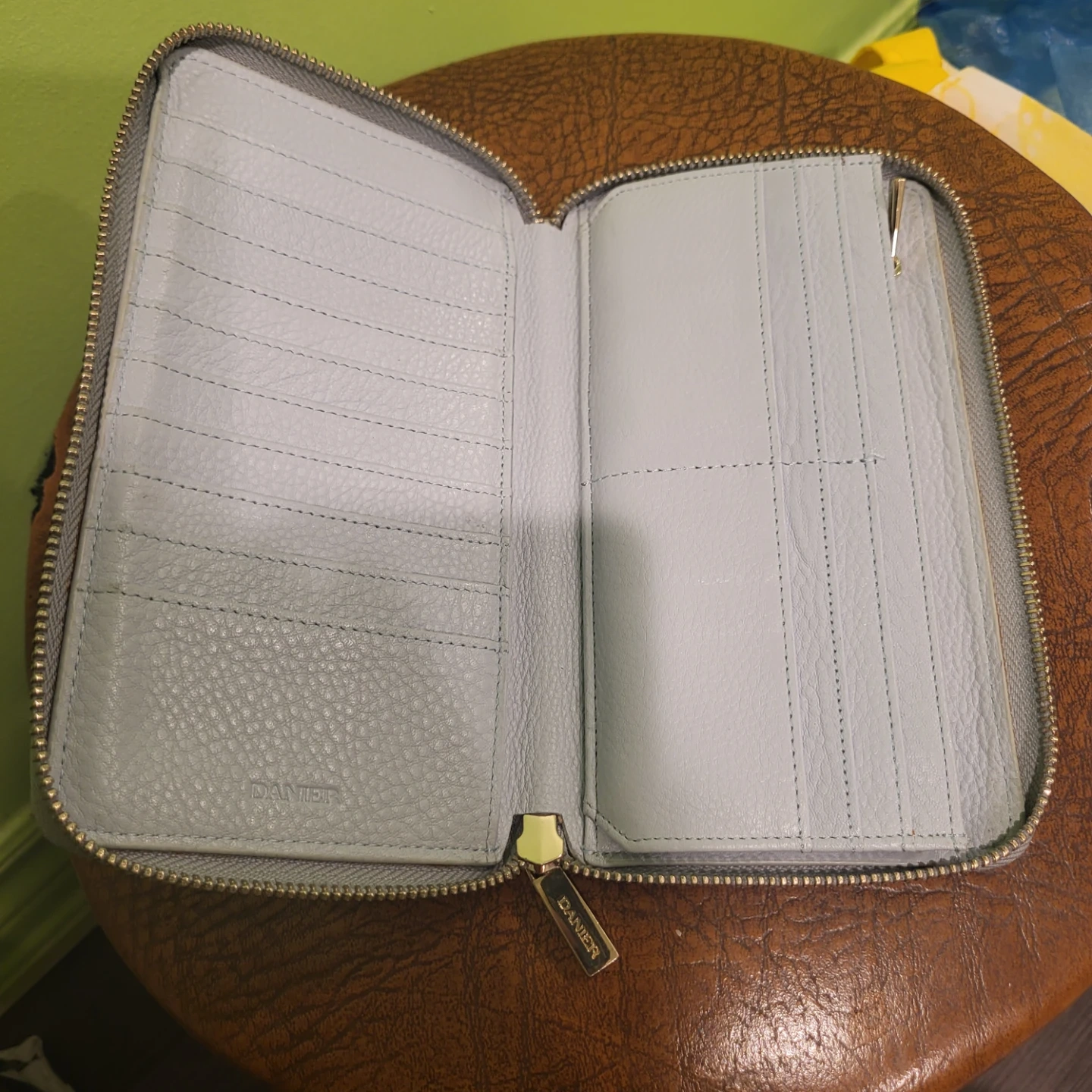 Buy & SellDanier Zip Around WalletDanier Zip Around Wallet$45A light blue Danier zip around wallet. It's made of leather and has multiple card slots and a zippered pocket. Plenty of room for your essentials!ConditionLike newSize7.5 w, 4 l, 1 dWHERE TO MEETDufferin Street & Castlefield AvenueView MapSELLERverifiedEddaBriar Hill - Belgravia36824 reviews0 chats·0 favorites·6 viewsSEND CHAT TO SELLERHi Edda! I’m interested in your listing.Hi Edda! I’m interested in your listing.Get the Karrot app to chatSign In to chat