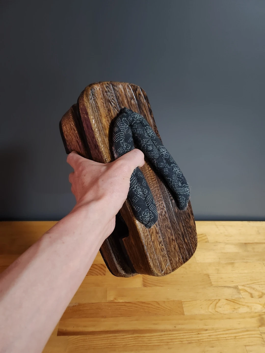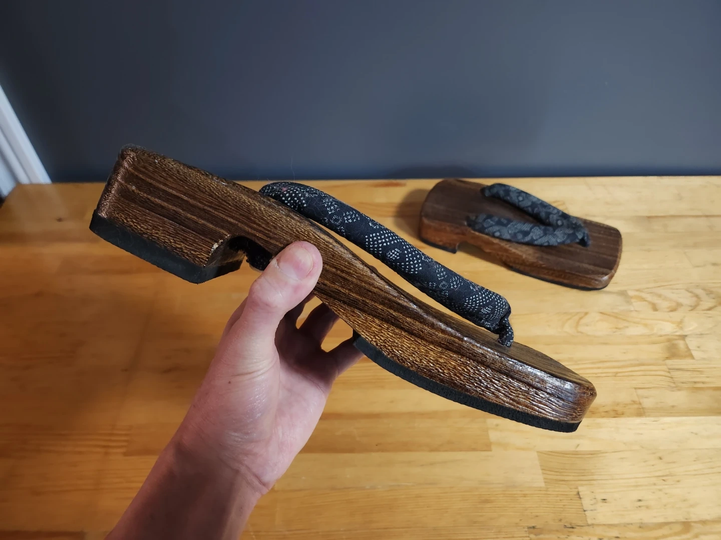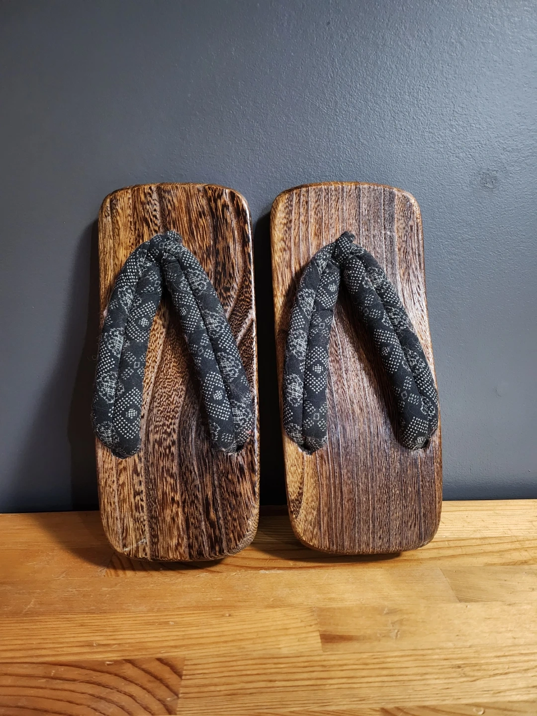 - Material: They are typically made from lightweight woods like paulownia (kiri) and often have a rubber sole for modern comfort and slip resistance. The hanao (thong) is made of a black fabric with a small white pattern.