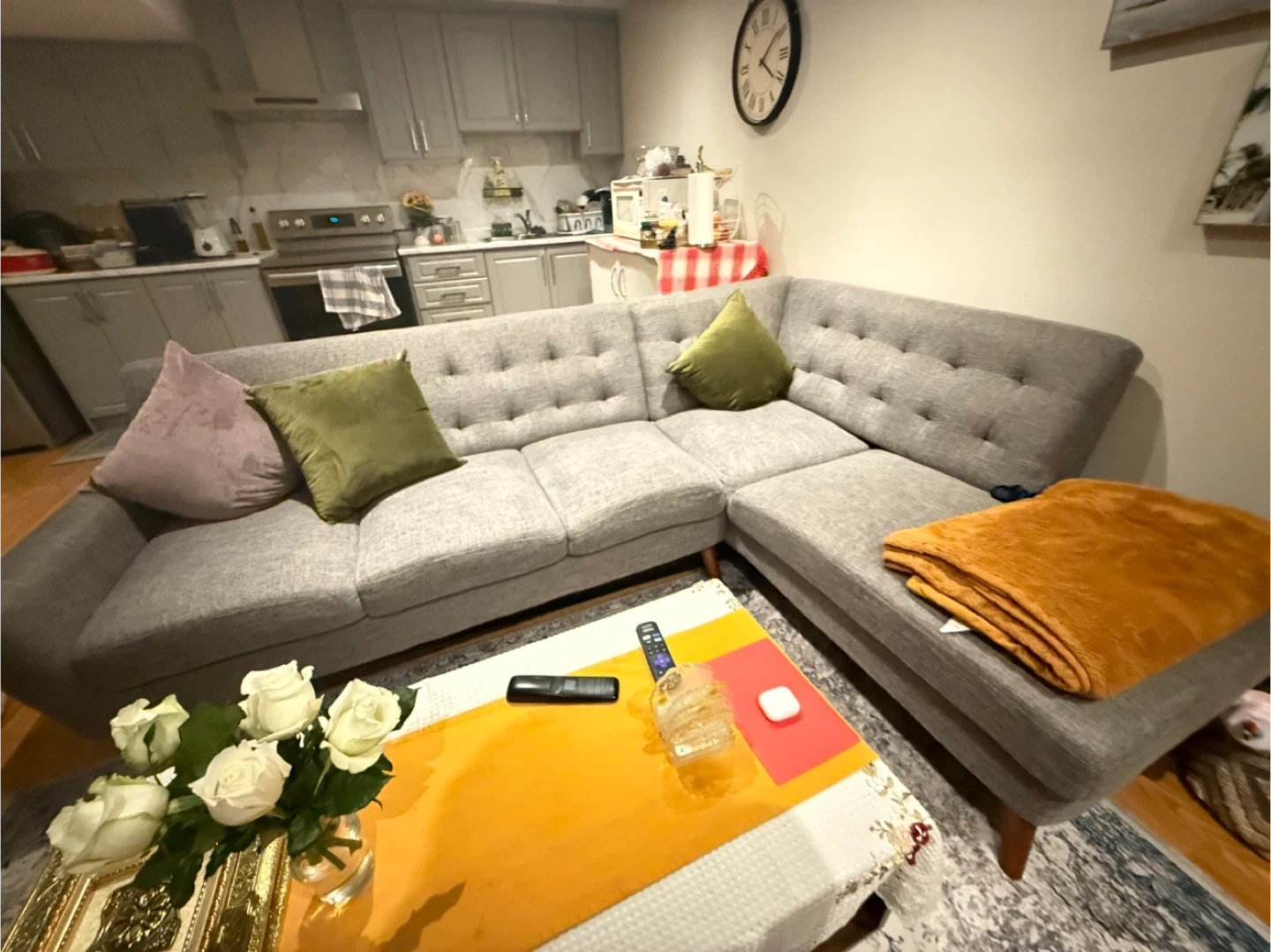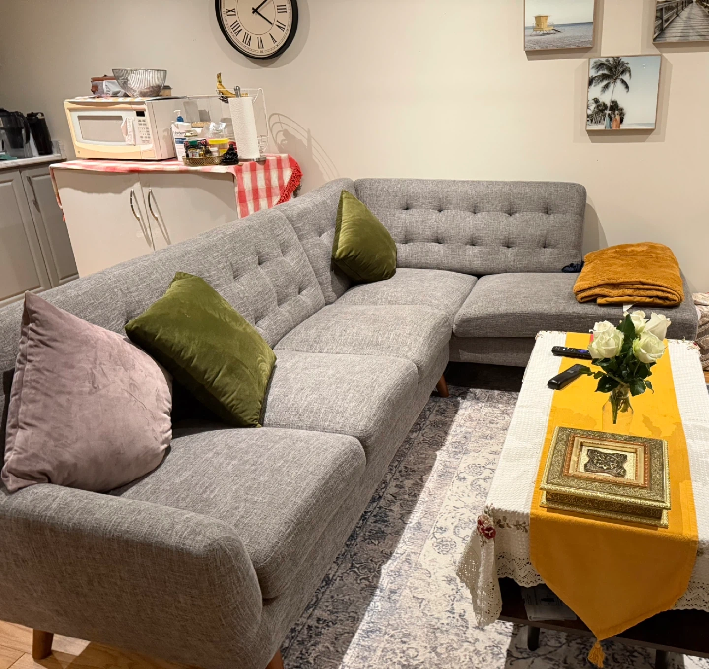 Grey Sectional Sofa with Tufted Back Cushions
