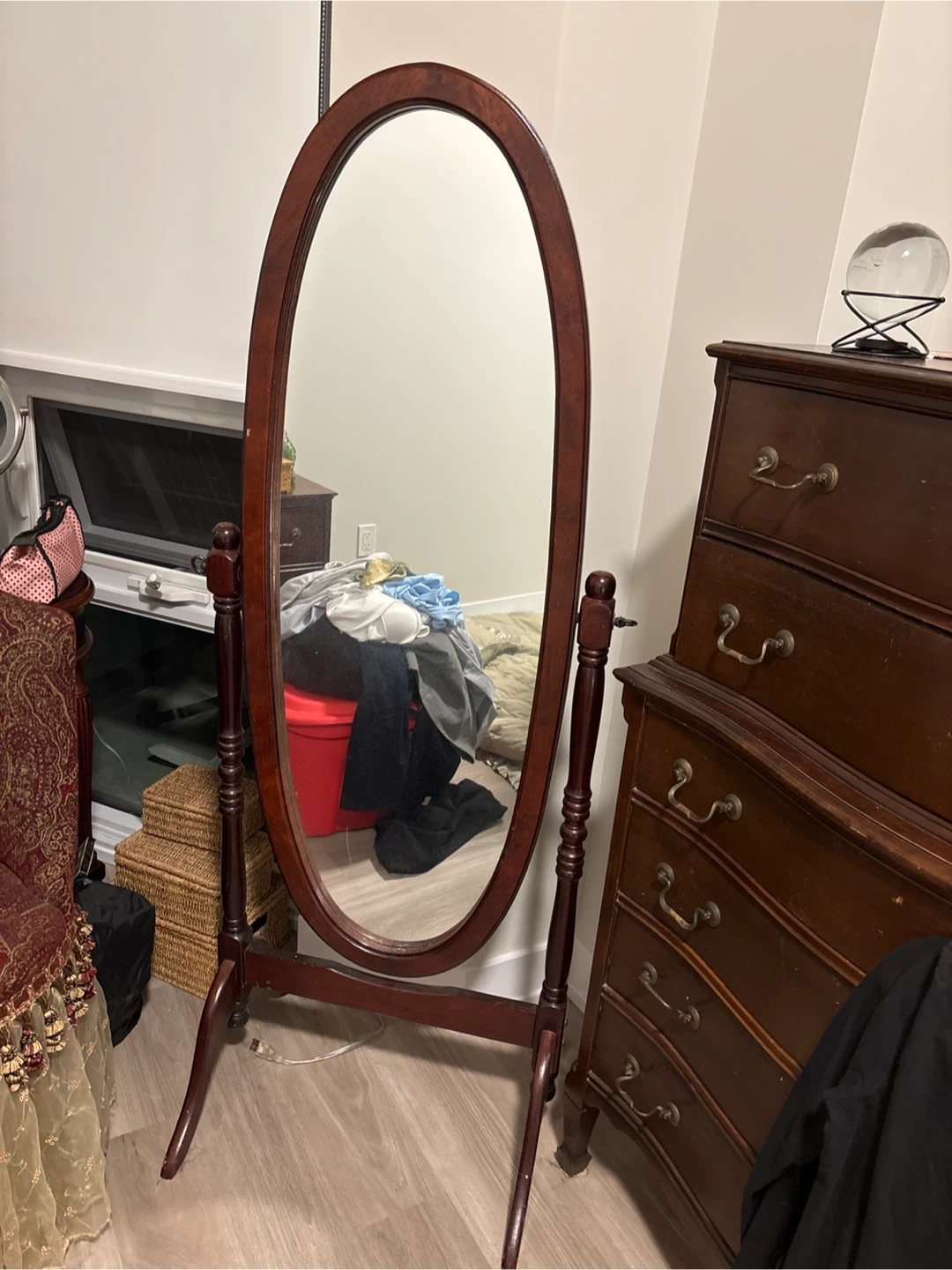 Solid wood oval full length mirror.