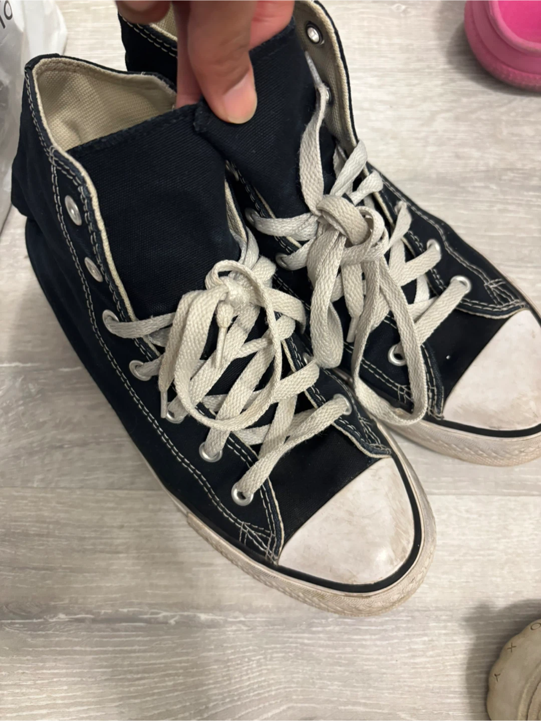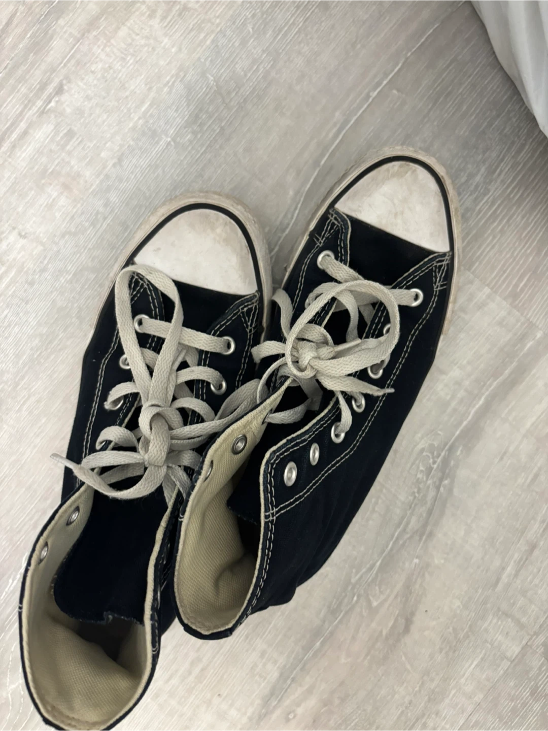 Selling a pair of Converse Chuck Taylor All Star high tops in a classic black colour! They're a size 4 UK and still have lots of life left in them. Perfect for adding a bit of retro style to your wardrobe!