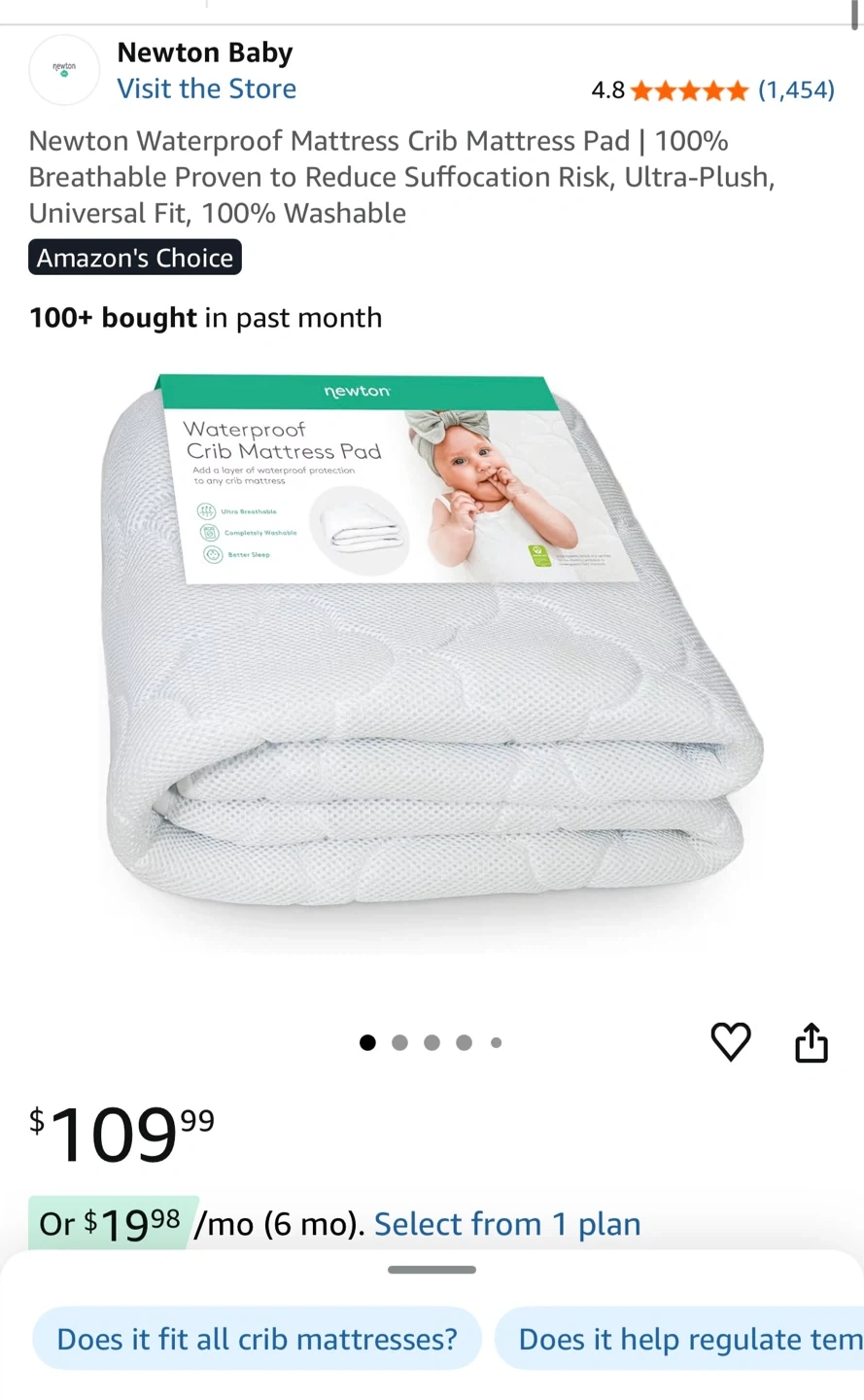 wooden 3-1 crib with Newton Crib Mattress Pad and cover