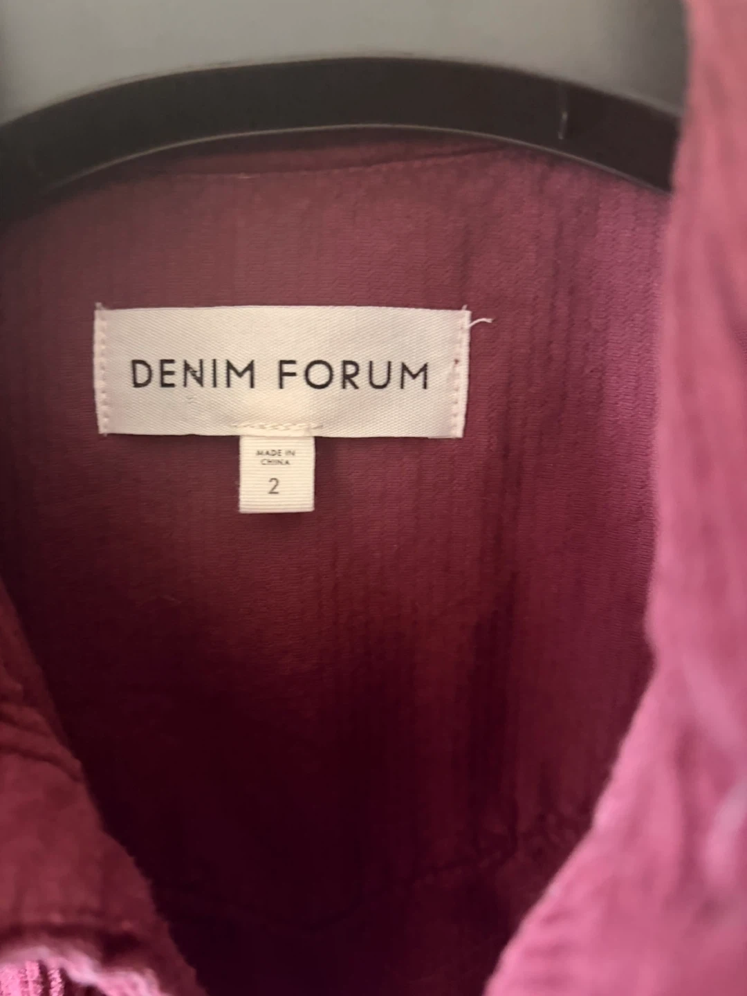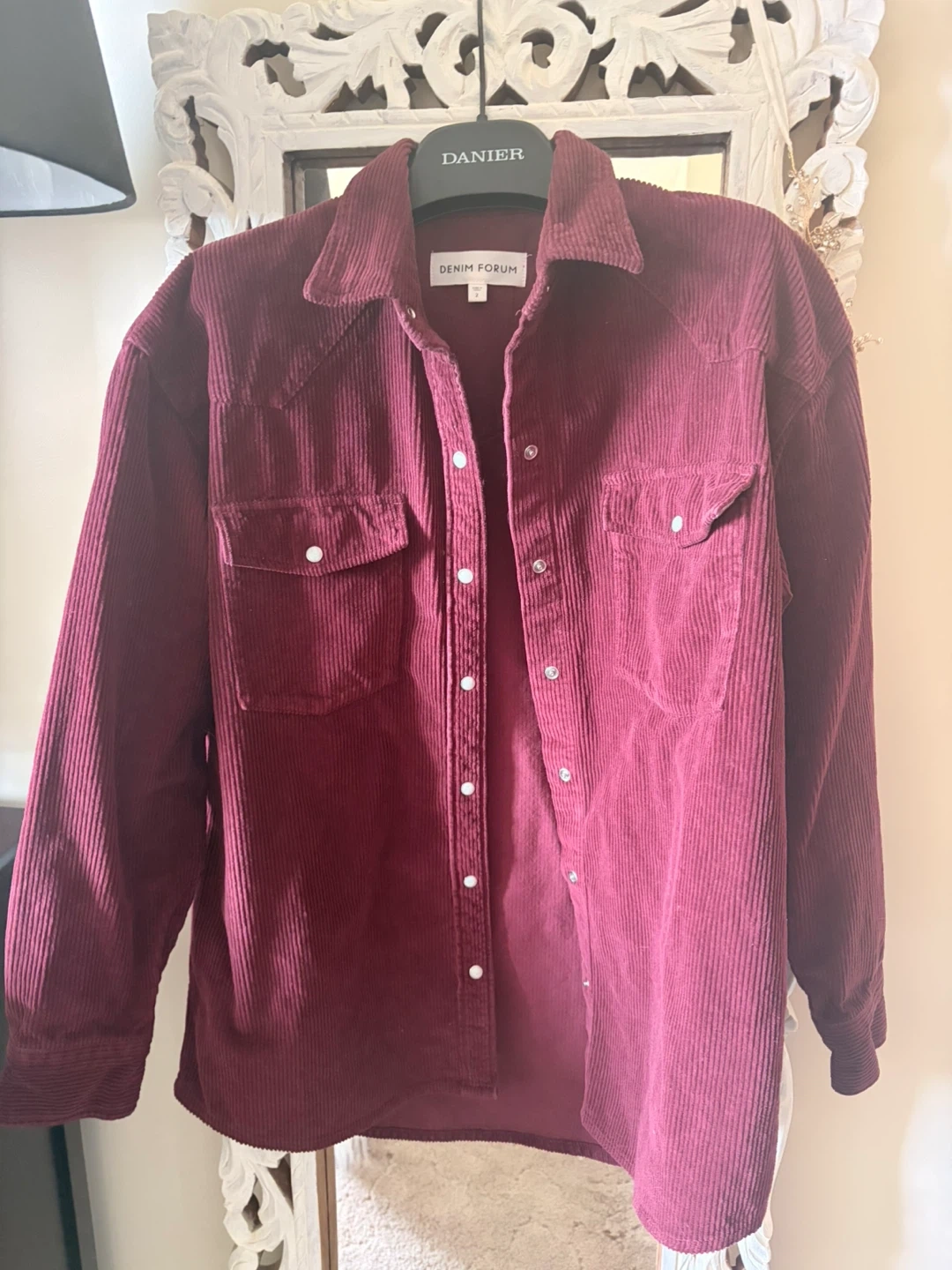 DENIM FORUM corduroy shirt. This maroon-coloured shirt is size 2 fits oversized. It's made of corduroy material and features two chest pockets.