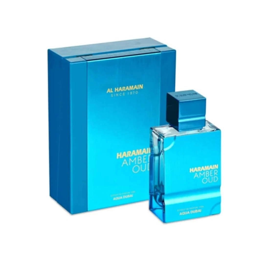 This is a bottle of Al Haramain Amber Oud Aqua Dubai perfume. It's an extrait de parfum with a volume of 100mL. This fragrance is suitable for special occasions or daily wear.