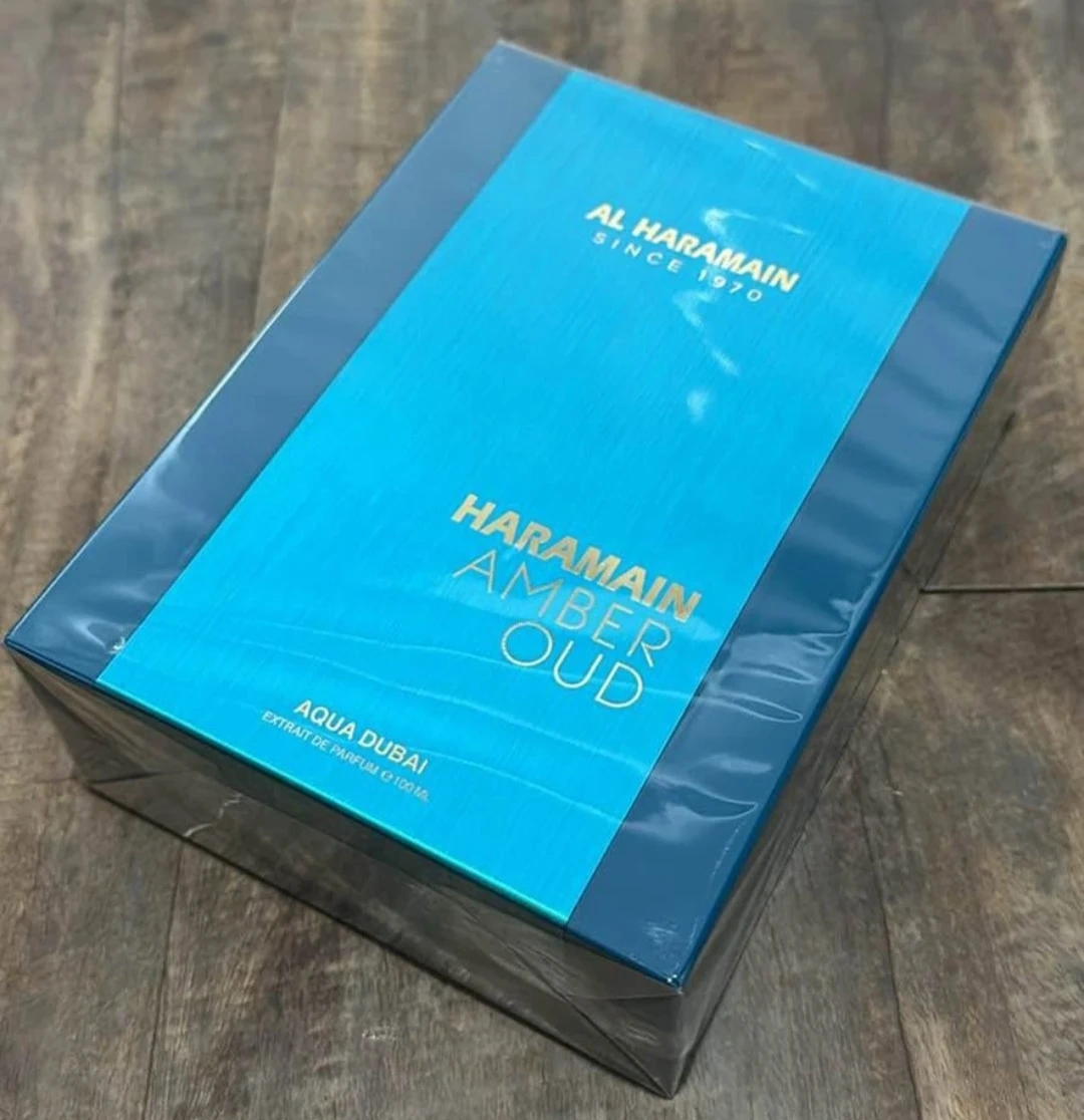 This is a bottle of Al Haramain Amber Oud Aqua Dubai perfume. It's an extrait de parfum with a volume of 100mL. This fragrance is suitable for special occasions or daily wear.