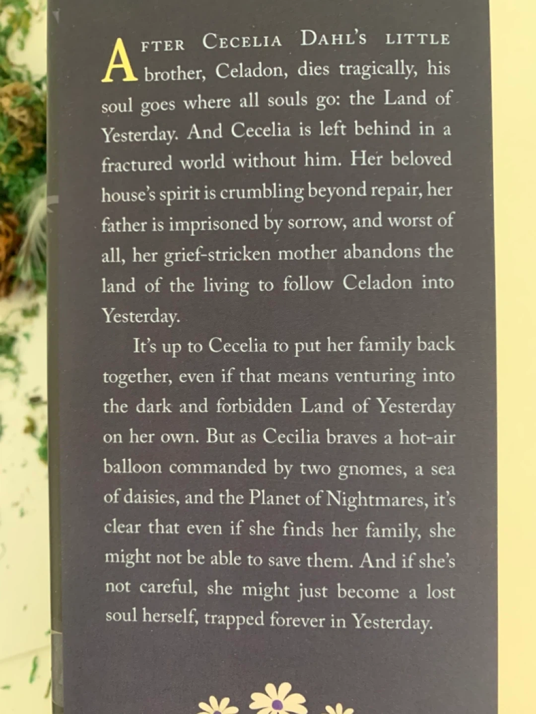 A young adult fantasy novel. This book is about a girl named Cecelia who journeys into the Land of Yesterday to find her lost brother. It's filled with dark magic and adventure!
