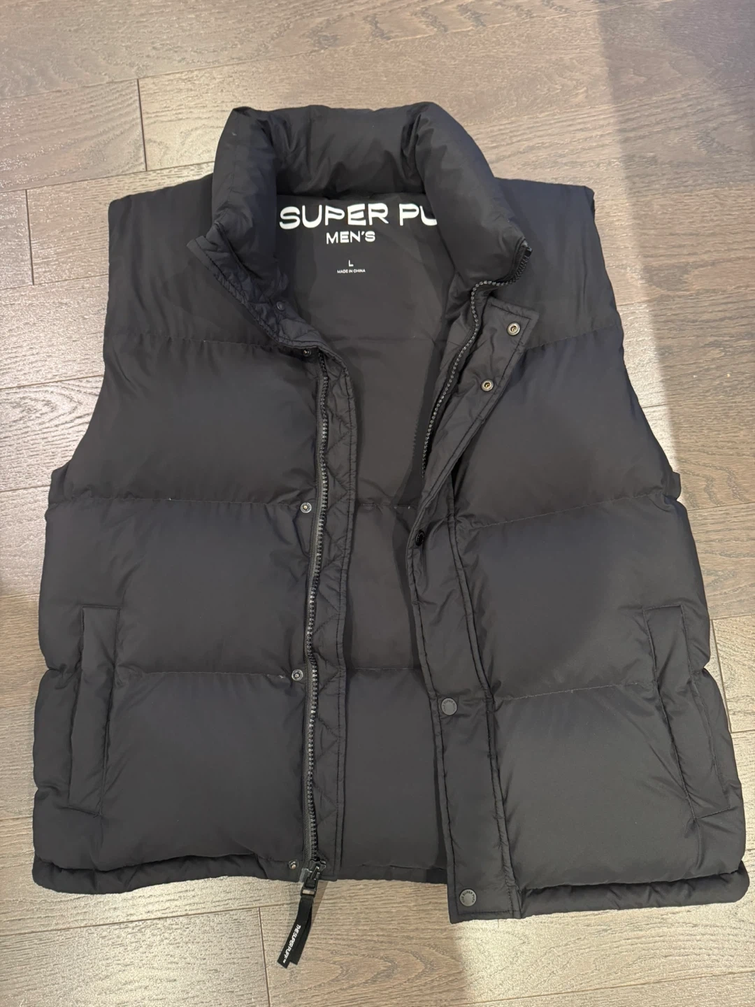 Buy & SellSUPER PU MEN'S Puffer Vest - Black, Size LSUPER PU MEN'S Puffer Vest - Black, Size L$25Black puffer vest for men. It's a size large and made in China. This vest is great for layering during cooler weather!ConditionLike newSizeLBrandSUPER PUWHERE TO MEETWest 29th AvenueView MapSELLERverifiedsuniS Cambie903 reviews2 chats·0 favorites·10 viewsSEND CHAT TO SELLERHi suni! I’m interested in your listing.Hi suni! I’m interested in your listing.Get the Karrot app to chatSign In to chat