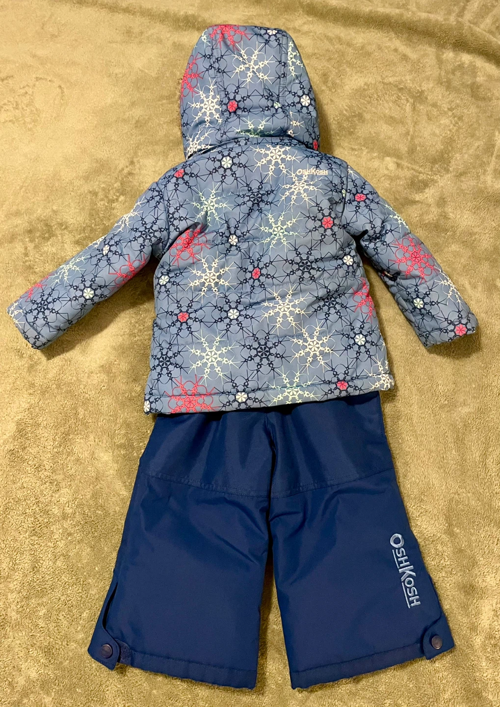 Adorable OshKosh Bgosh snowsuit, size 18M. It fit my daughter until 2-2.5 yrs. It's in great shape, with done minor wear and tear, and kept her very warm.