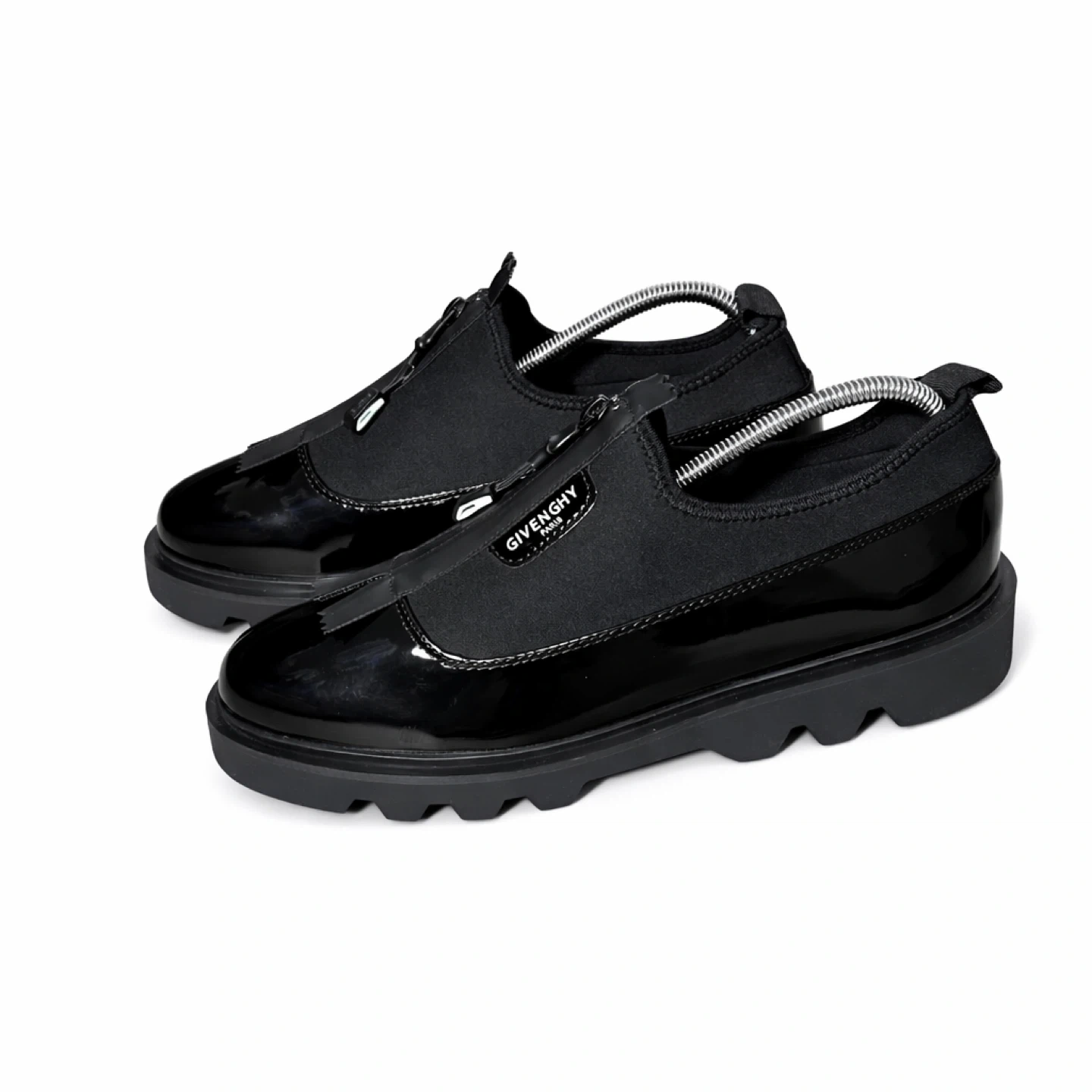 Givenchy Black Patent Leather and Fabric Zip Up Loafers
