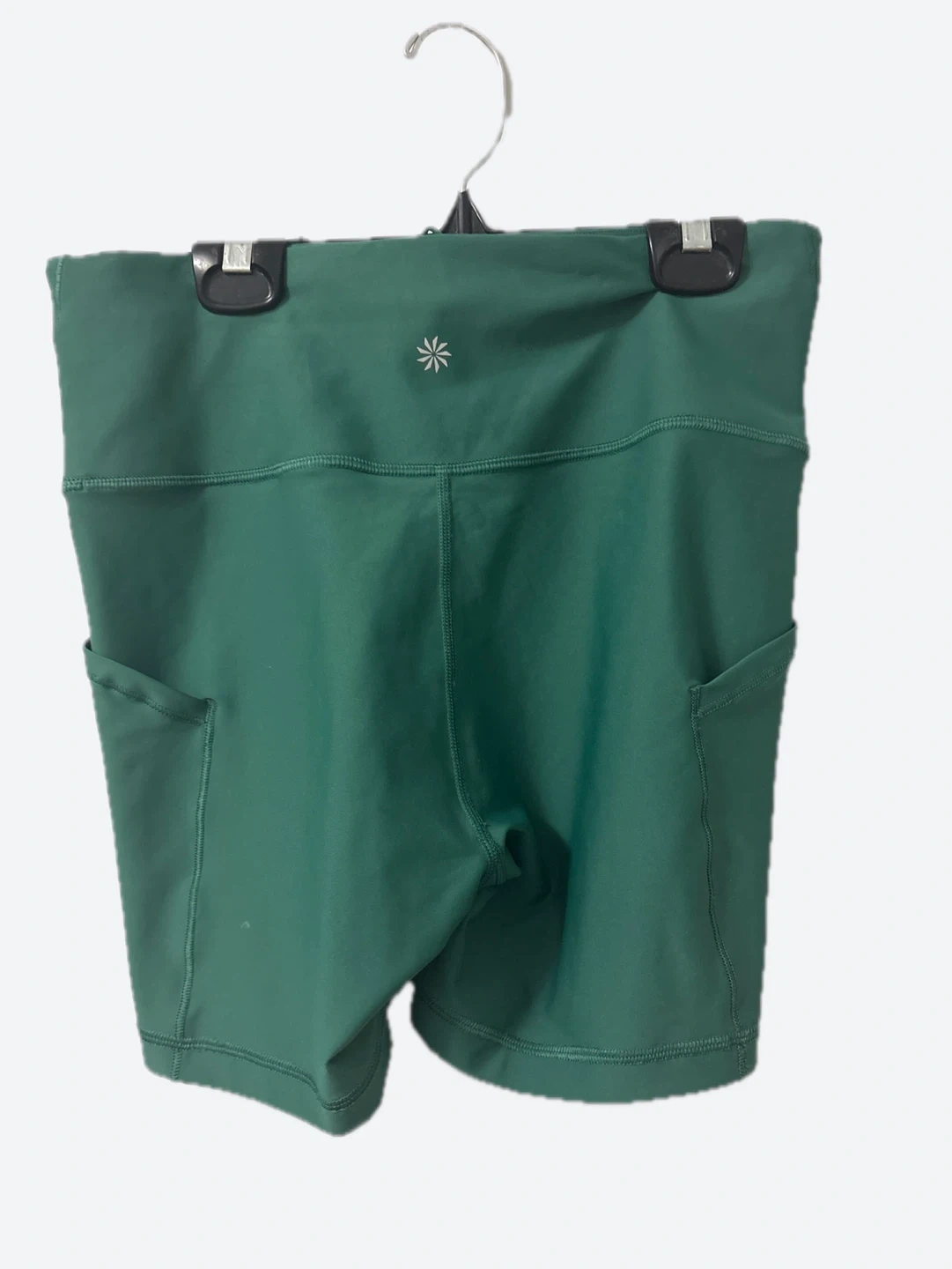 These Athleta bike shorts are a lovely forest green colour. They feature handy side pockets and a comfortable high-waisted fit. Great for workouts or everyday wear!