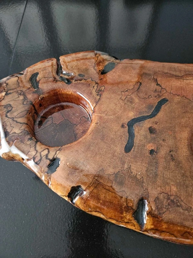 Add a touch of rustic charm with this unique, handmade burl wood candle centerpiece.