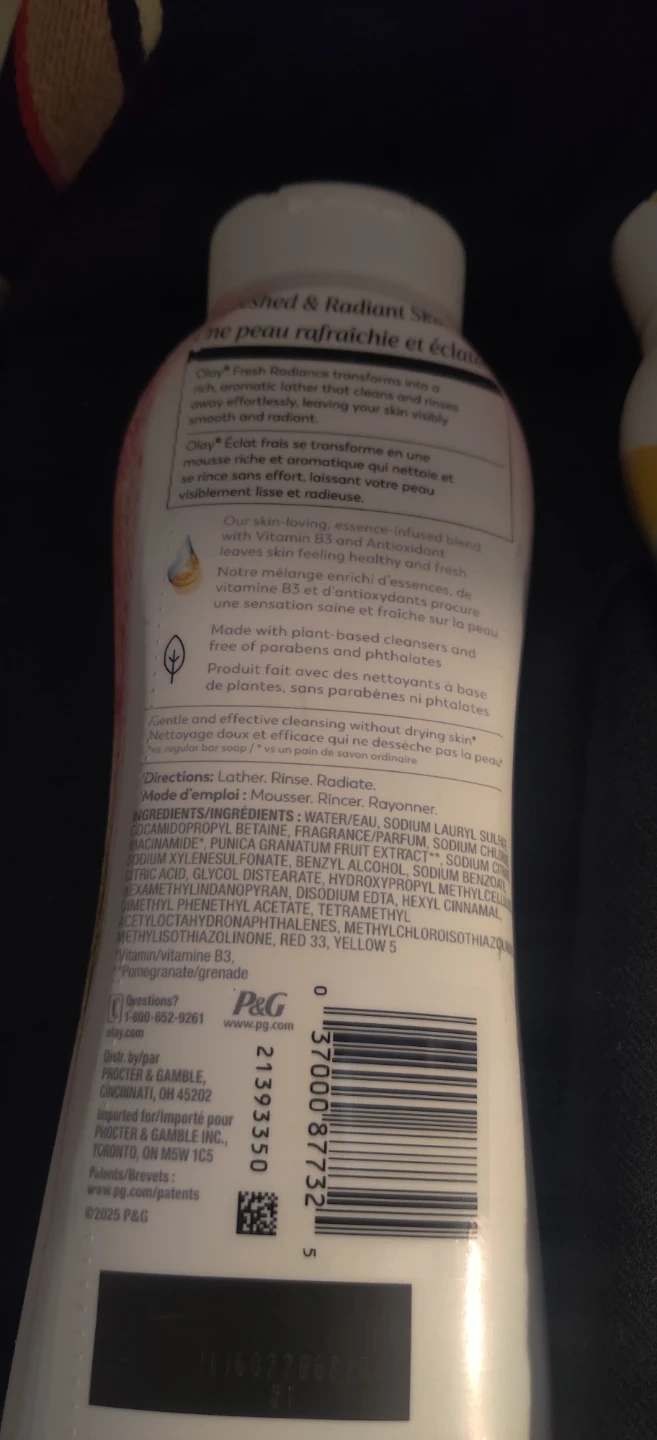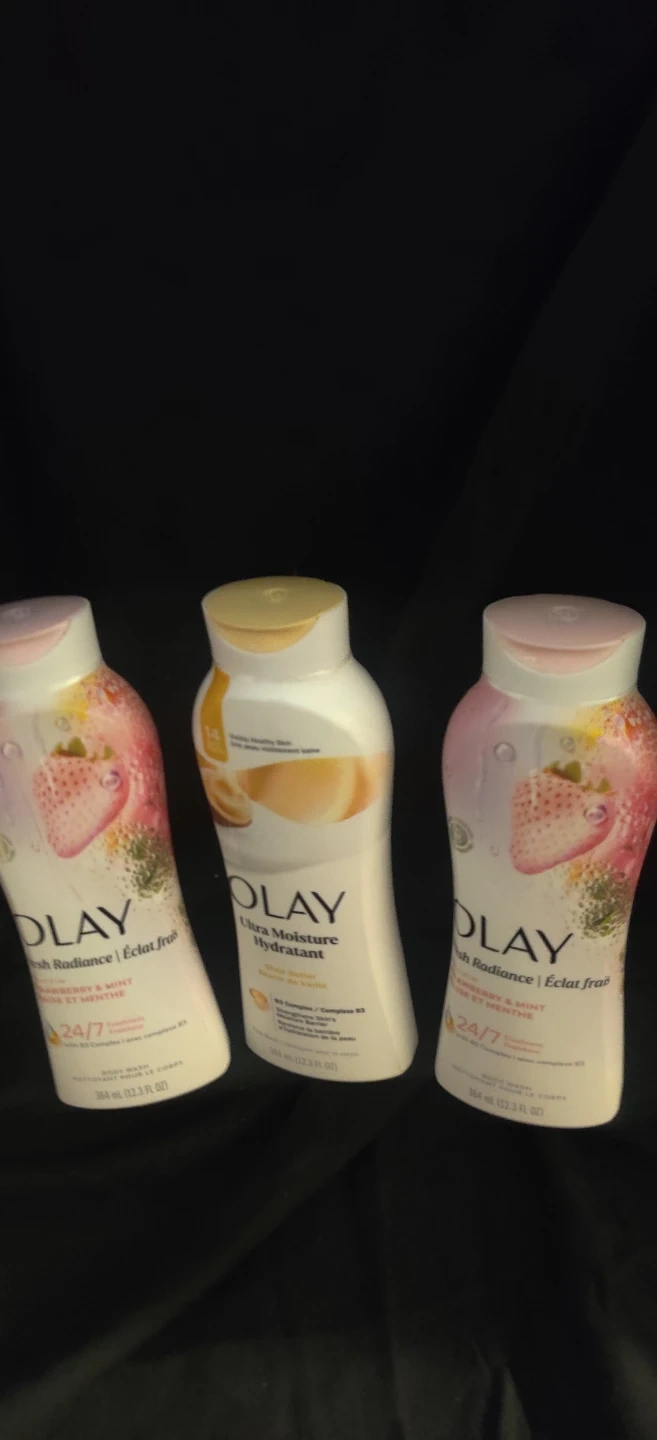 This listing includes Olay Ultra Moisture Hydrating Body Wash with Shea Butter and Olay Fresh Radiance Body Wash with Strawberry & Mint. Each bottle contains 364 mL (12.3 FL OZ). These body washes are formulated with B3 Complex to strengthen the skin's moisture barrier.