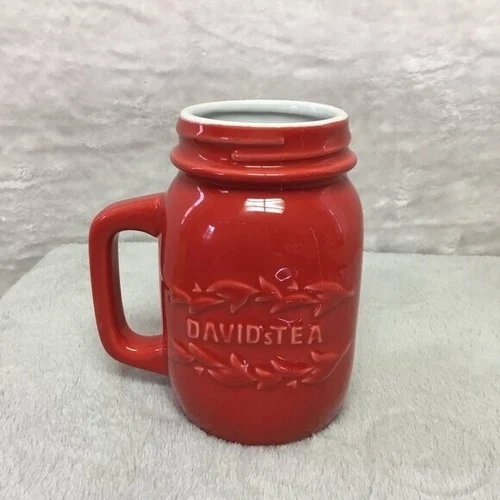David's Tea Mug Cup Mason Jar Style Ceramic Red No Lid No Infuse