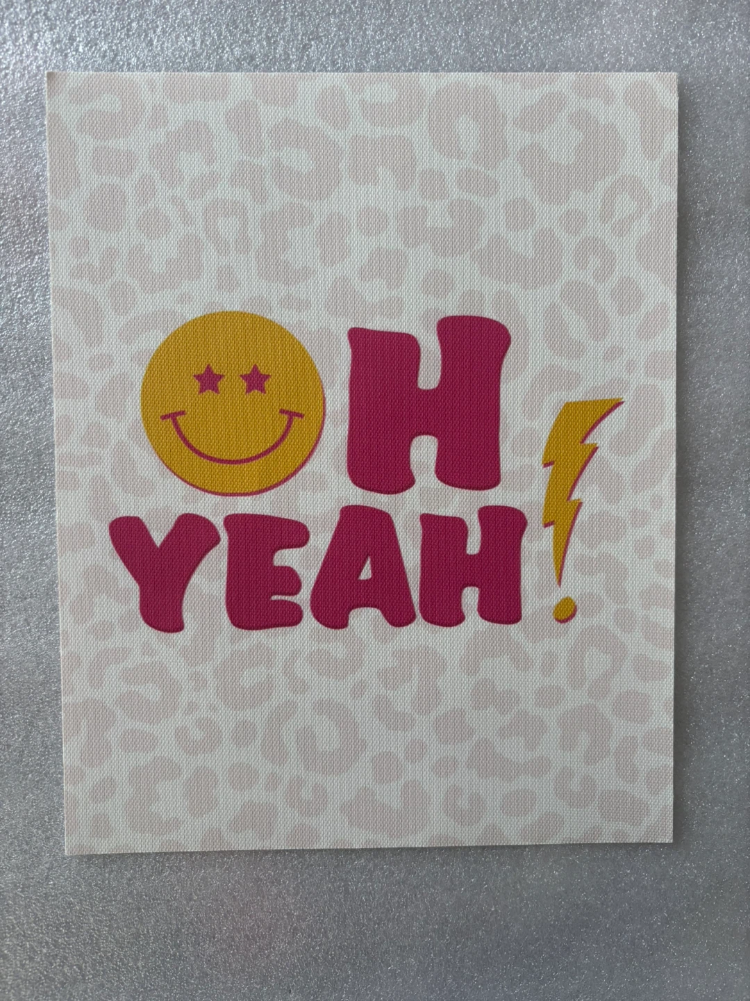 Here's a cute set of three canvas prints! They feature a pink leopard print, smiley faces, and the phrase 'Oh Yeah!' They'd be perfect for adding a pop of fun to any room