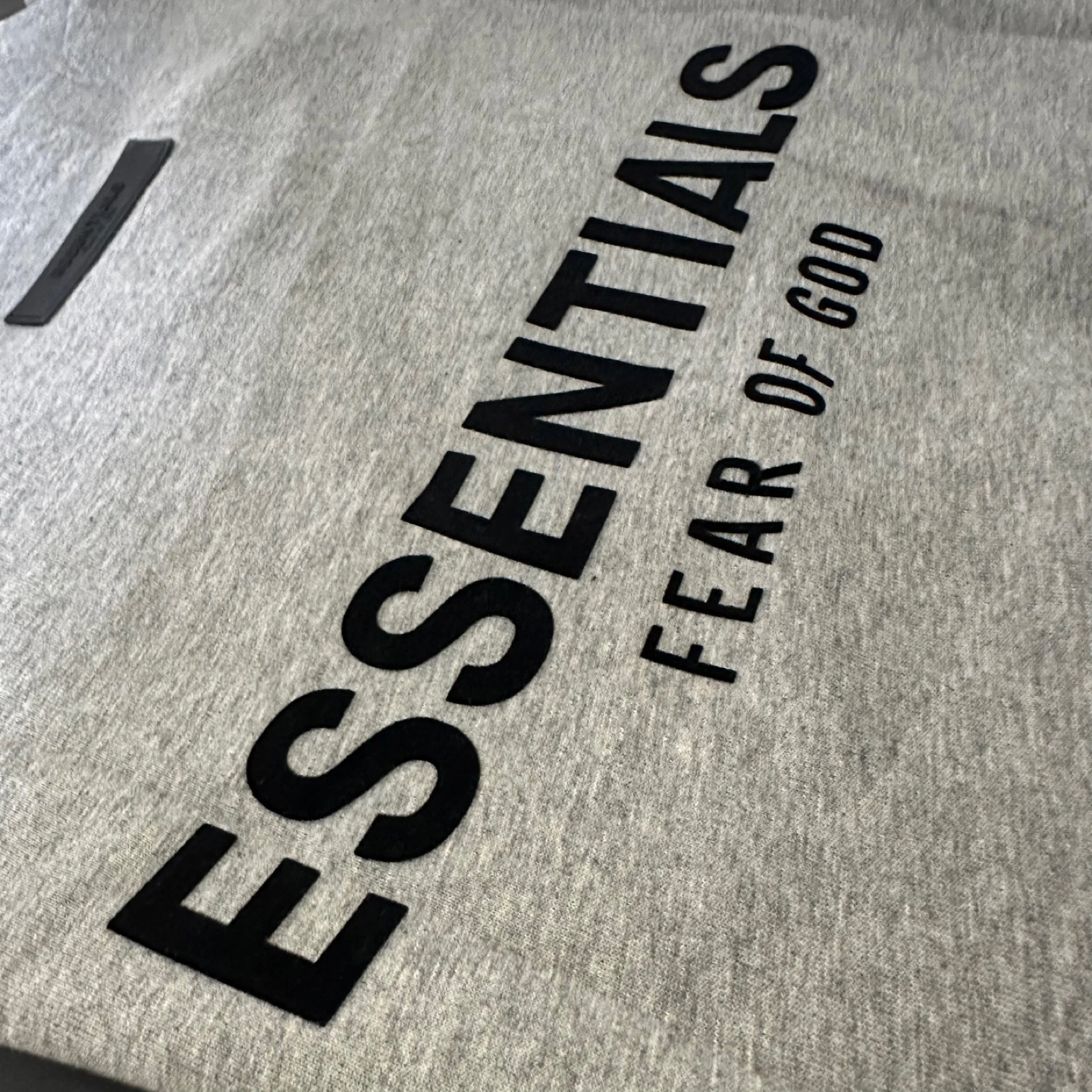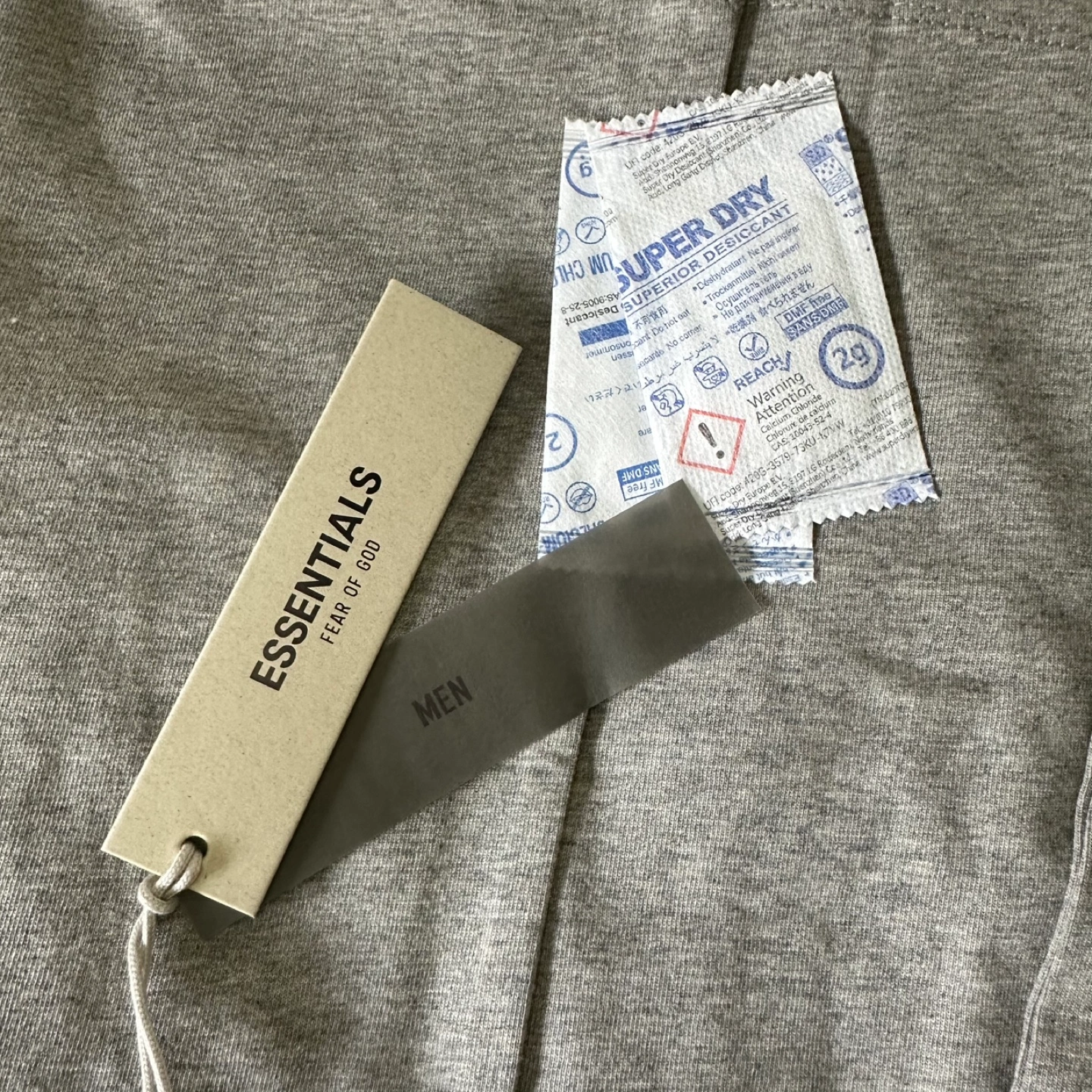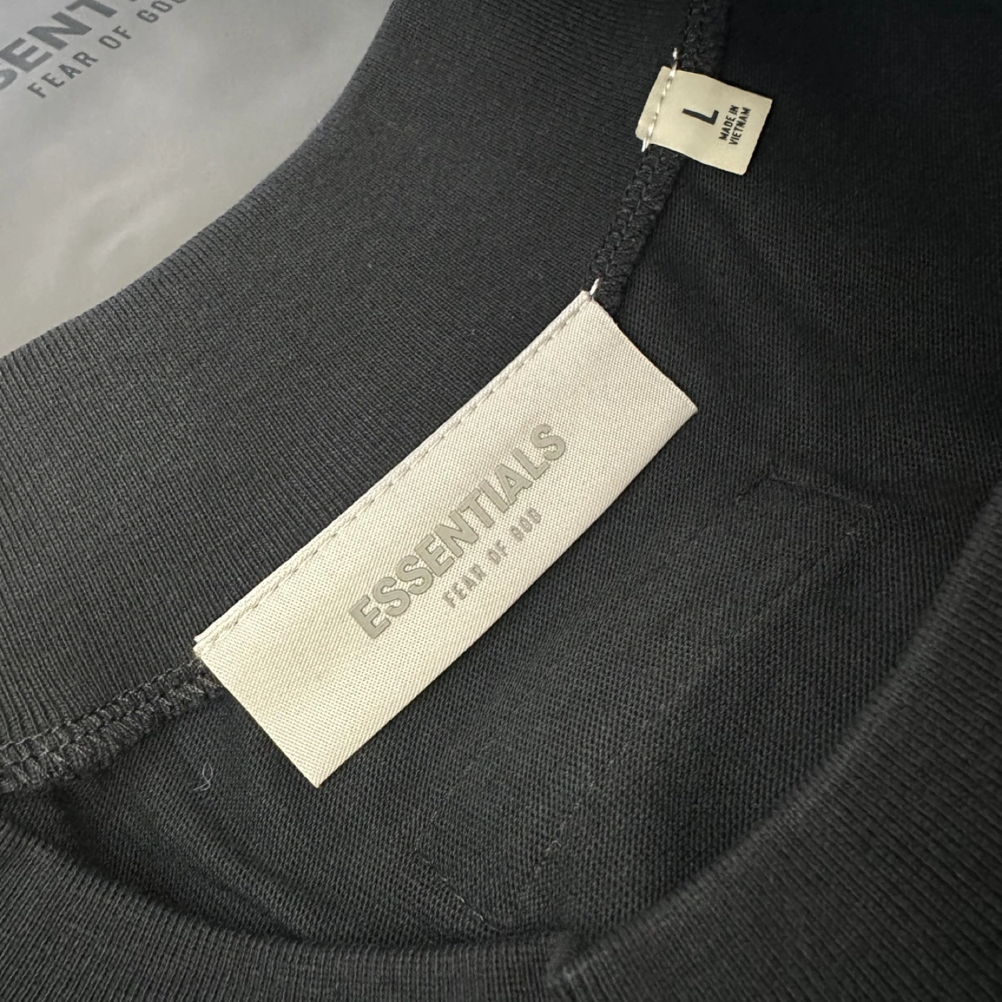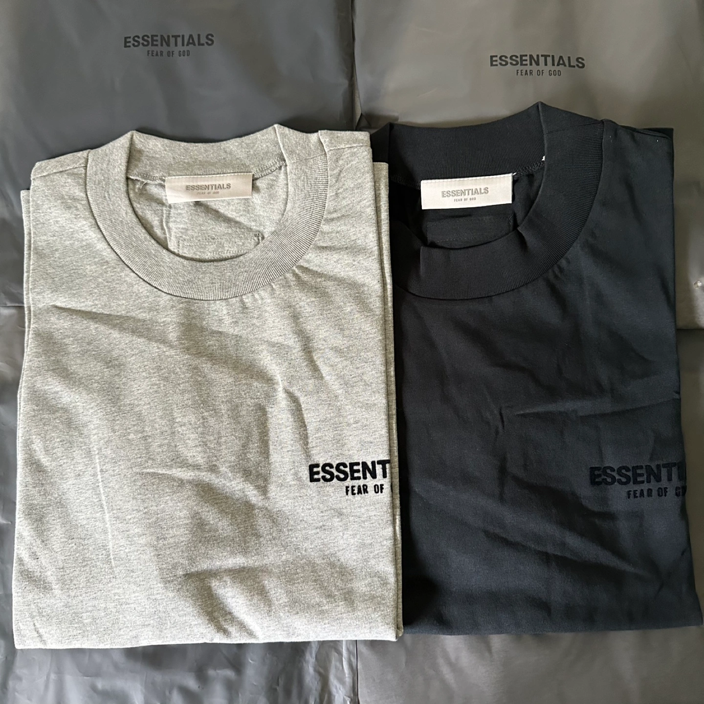 12SS22 Fear of god essential t-shirt for men in new condition. Black and dark oatmeal. Medium and Large only. Can meet richmond area.
