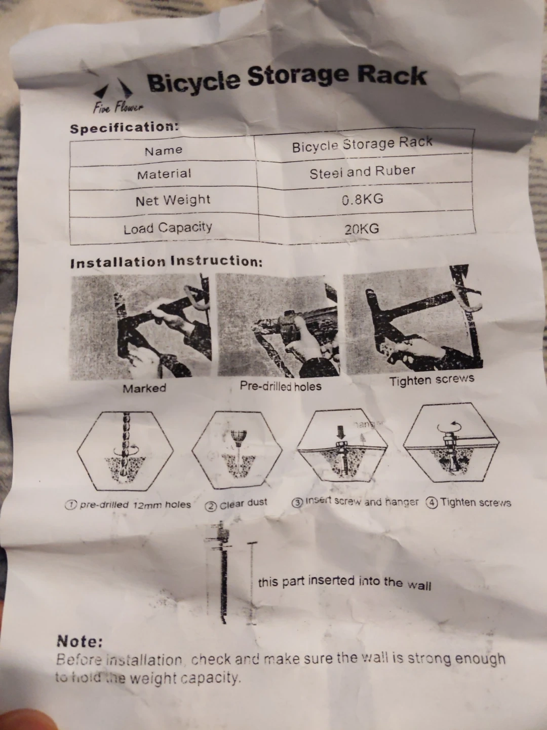 Bicycle bike Storage Rack mount hanger hook holder with screws