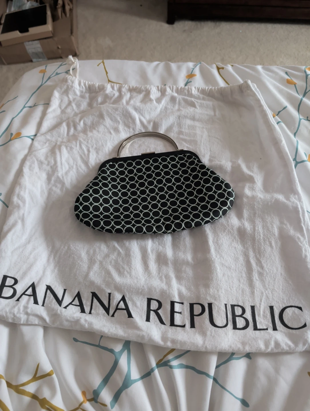 Buy & SellBanana Republic Clutch Bag with Circles PatternBanana Republic Clutch Bag with Circles Pattern$14This is a Banana Republic clutch with a black and white circles pattern. It has a silver metal handle. Includes a white Banana Republic dust bag.ConditionLike newWHERE TO MEETCornell Community CentreView MapSELLERverifiedHeatherGreensborough600 reviews0 chats·0 favorites·2 viewsSEND CHAT TO SELLERHi Heather! I’m interested in your listing.Hi Heather! I’m interested in your listing.Get the Karrot app to chatSign In to chat