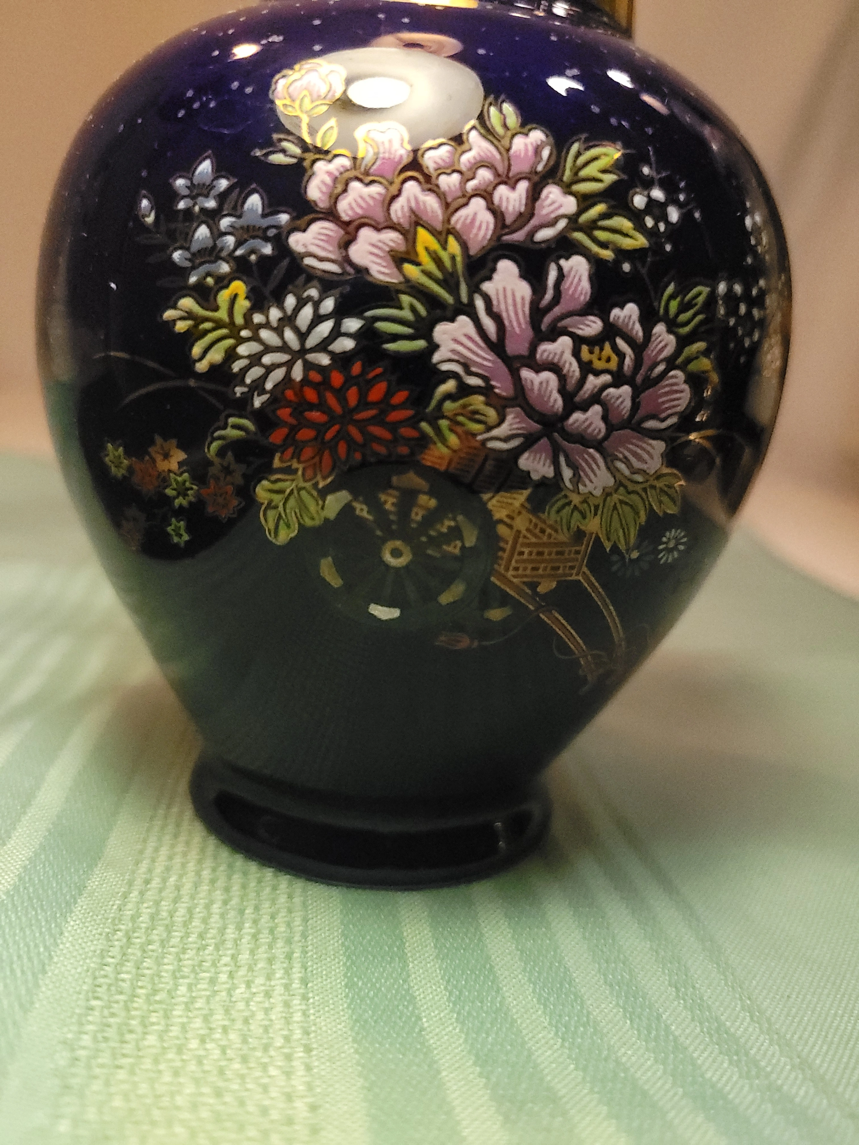 1960s Japanese Cobalt Blue Porcelain Vase - Flower Cart Vintage