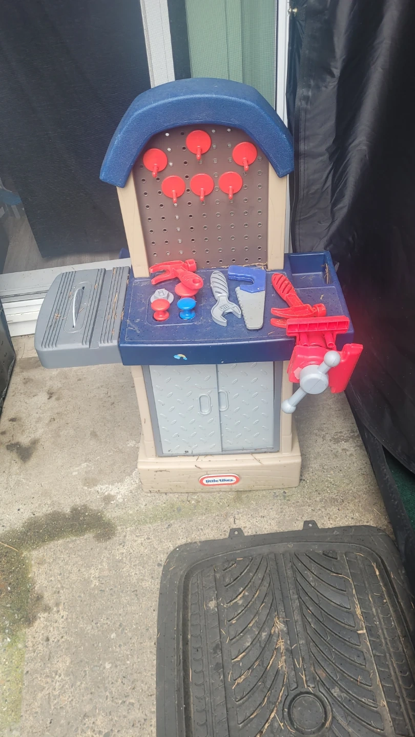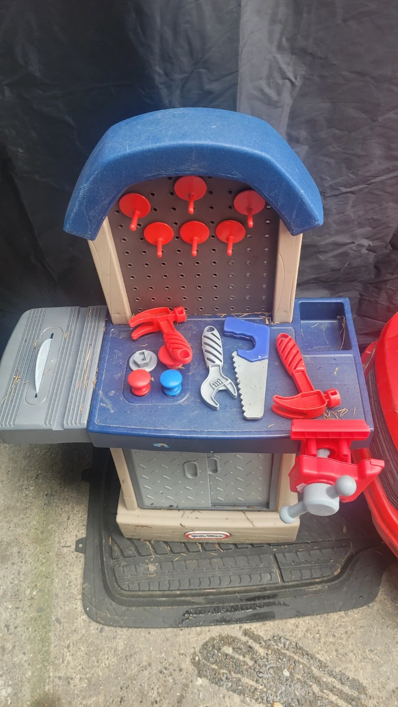 This Little Tikes workbench comes with several colourful tools for playtime fun. It's a sturdy plastic construction. Great for imaginative building and fixing projects!